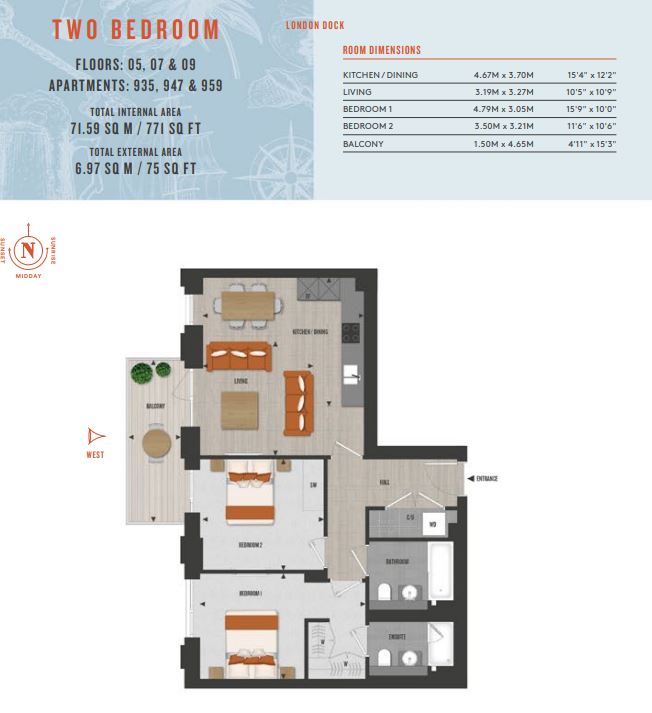 5th Floor | 771 Sq Ft | Private Balcony 75 Sq Ft | Berkeley Development | 24 Hour Concierge | Exclusive Access to the Health and Fitness Suite – Swimming Pool, Sauna, Steam Room, Jacuzzi, Gym, Private Cinema, Virtual Golf Suite, Squash Court | East Elevation with Views Over Private Residents’ Water Garden | Near Zone 1 Transport Links | Prime Location at the Heart of London Dock | London Dock is Set Within 7.5 Acres of Open Space | Off Plan Assignment |
