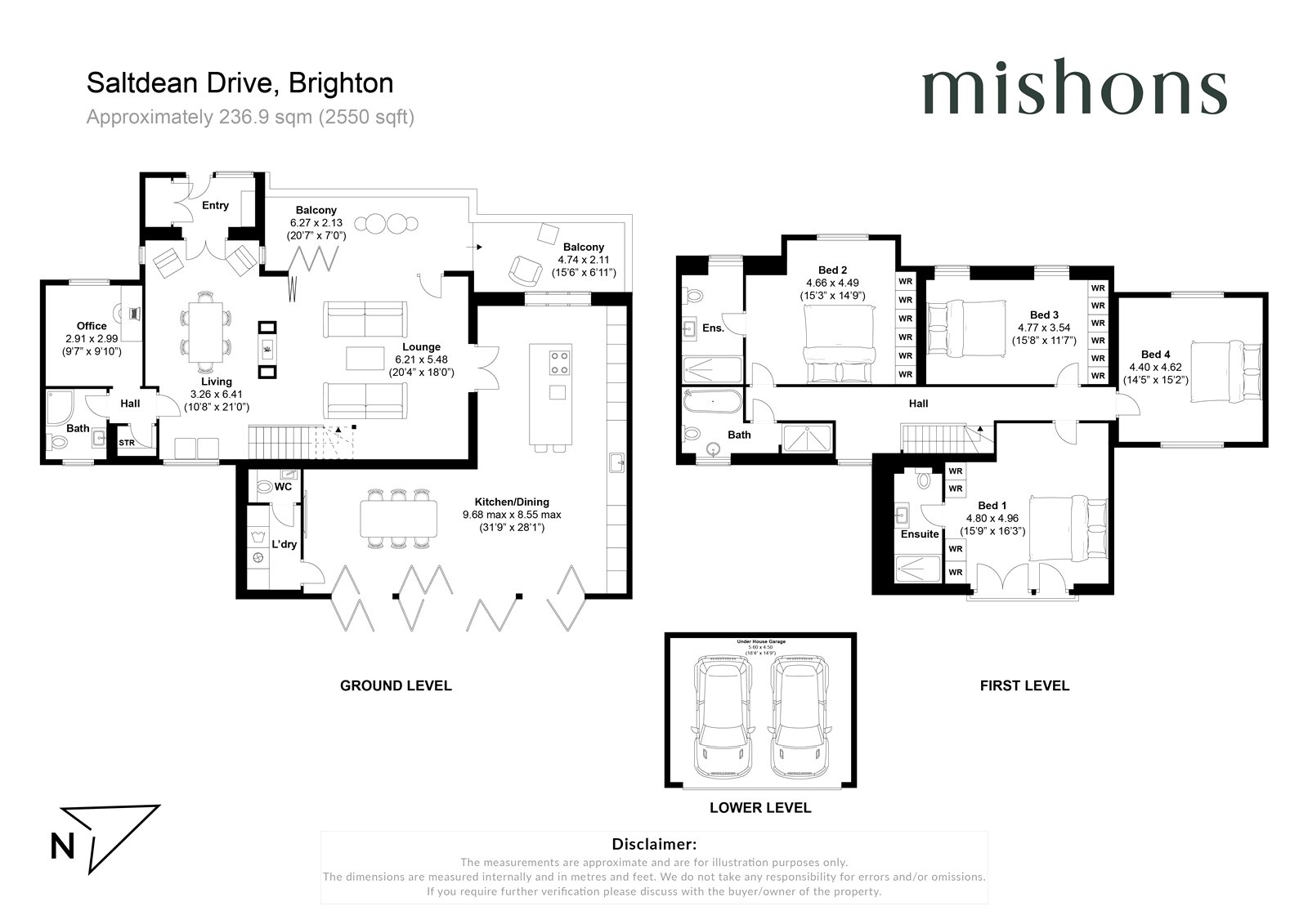 Outside, the home extends its allure with a split-level landscaped garden, featuring a private terrace area for alfresco dining, a lush lawn section for outdoor play, and additional seating areas for moments of repose. To the front, a driveway and a double garage provide secure parking for your convenience.