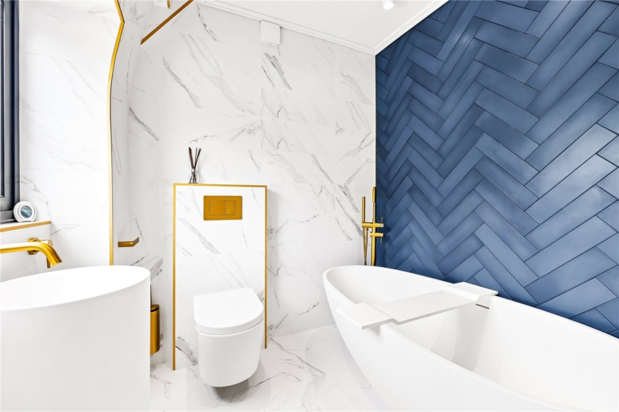 Ascend the staircase to discover four generously proportioned double bedrooms, each radiating their own unique sense of style and space. Two of these bedrooms enjoy the privilege of en-suite facilities, offering a private sanctuary within this captivating abode. The separate family bathroom is a work of art in itself, adorned with a stone bath and gilded accents, creating a spa-like ambiance that promises relaxation and luxury.