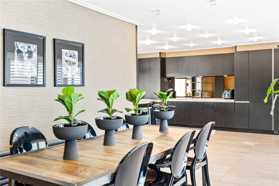 The kitchen and dining area, in a seamless L-shape design, is an epitome of sleek sophistication. Impeccable finishes and double bifold doors beckon you to explore the beautifully landscaped garden, creating a harmonious flow between indoor and outdoor living. A utility room and a convenient WC complete this section, ensuring every aspect of modern comfort is considered.