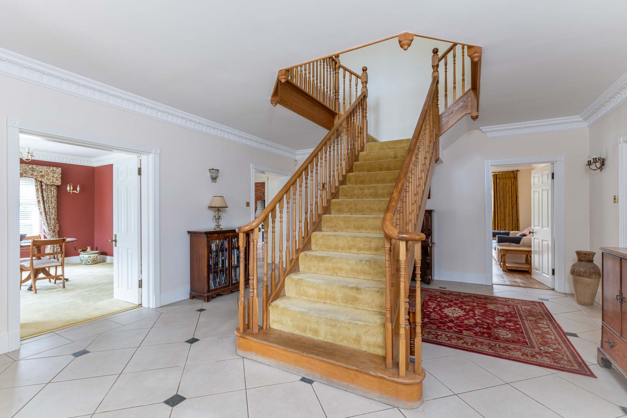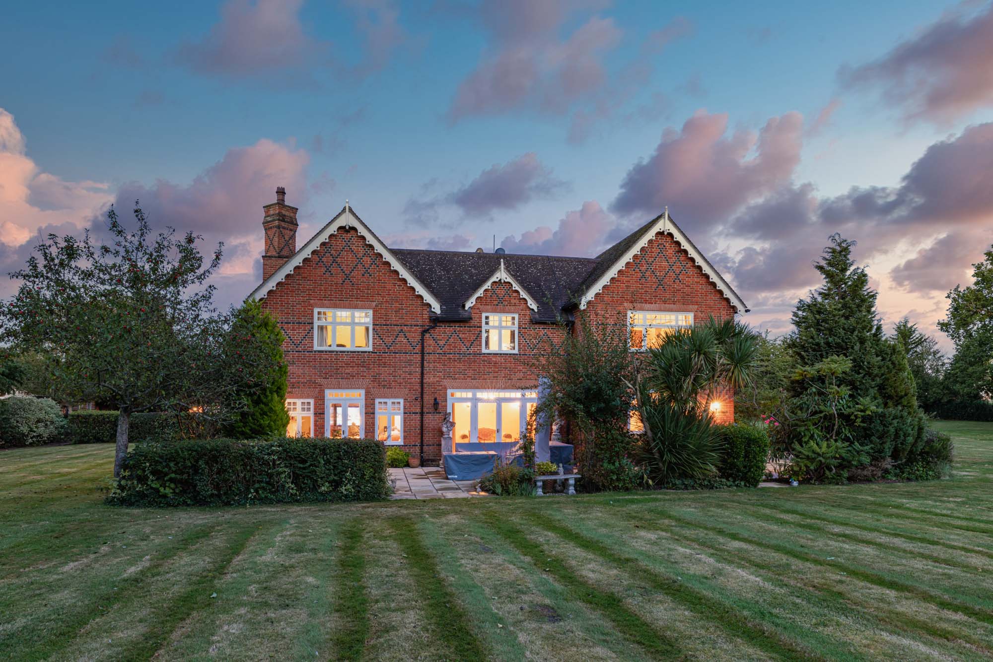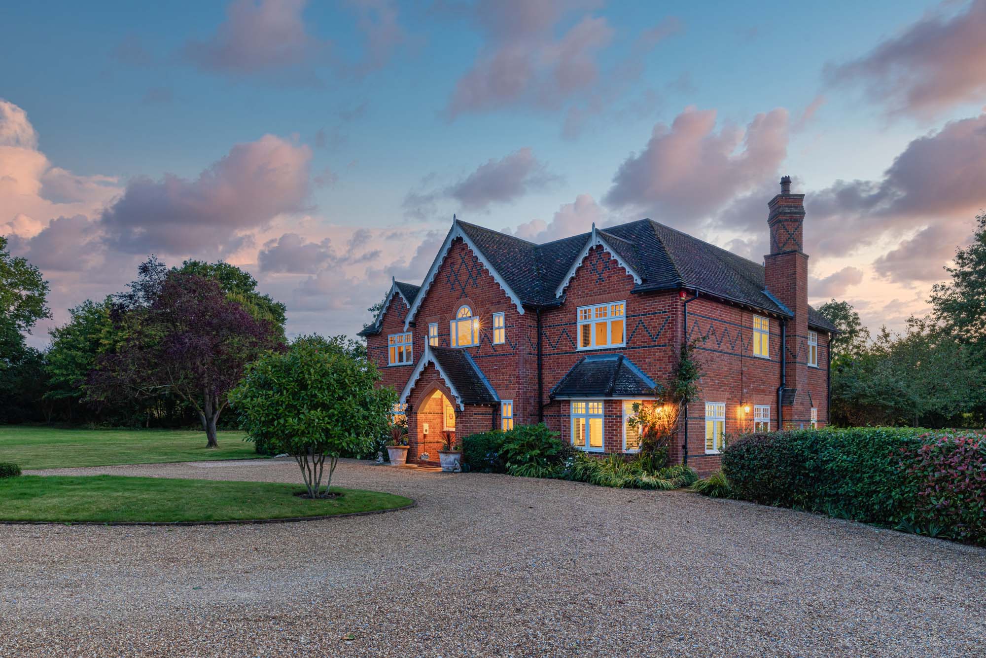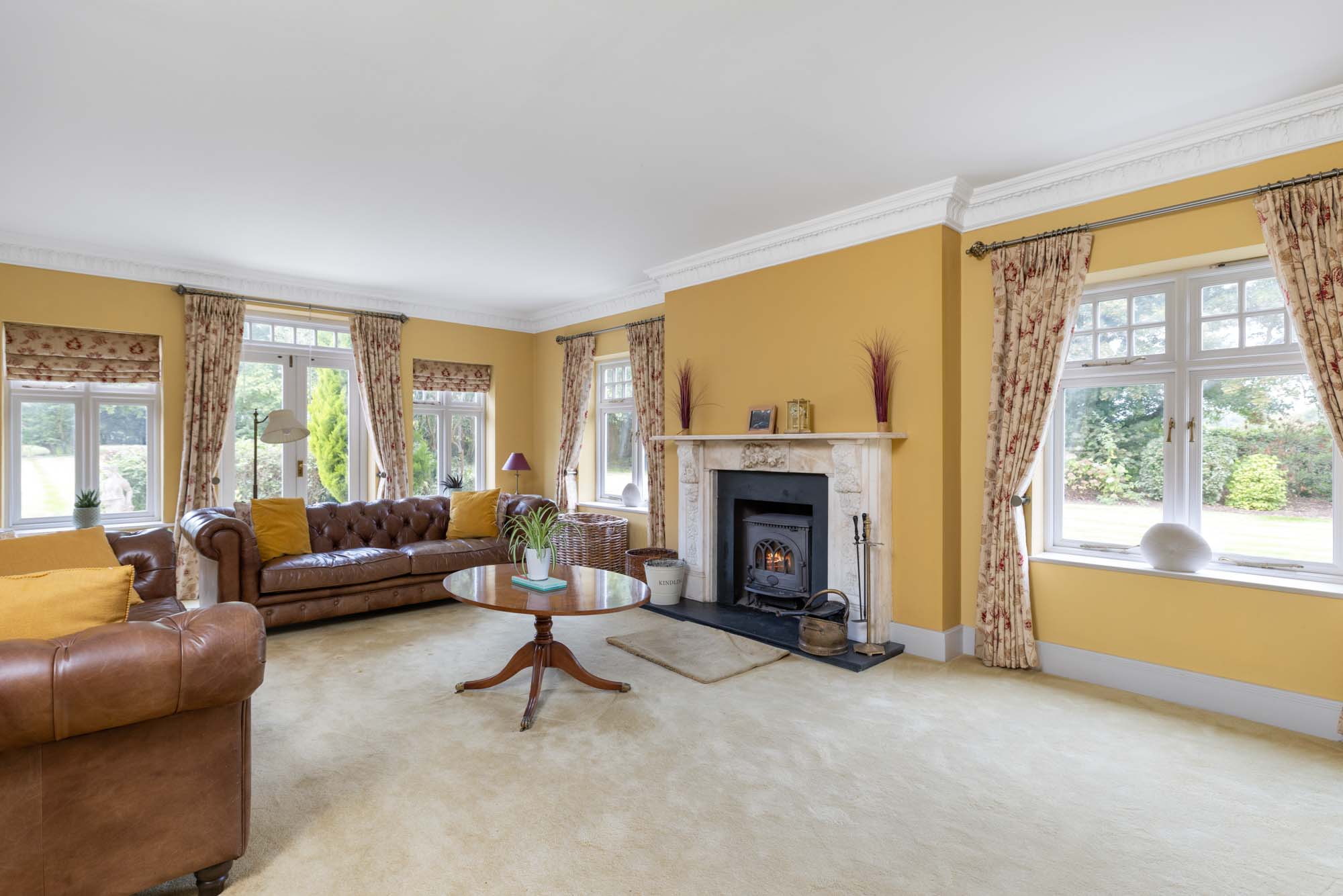 Ideally located within the two-acre plot, the home enjoys views from every window and door over the vast lawns spanning all the way around the home to the mature boundaries creating an exceptional feeling of space.