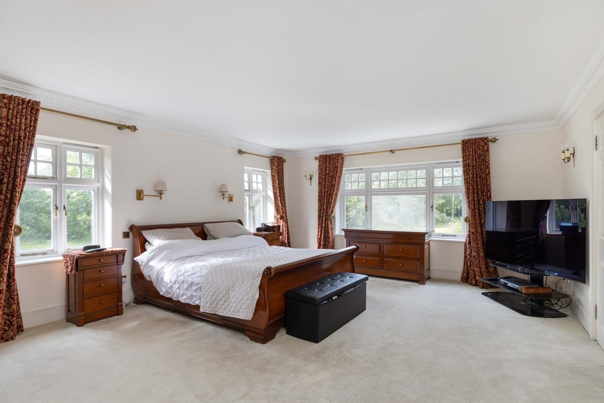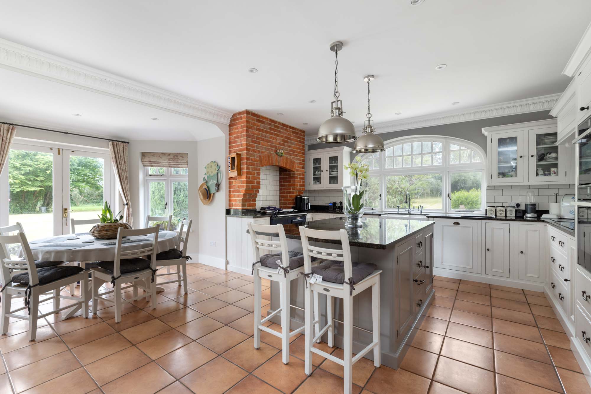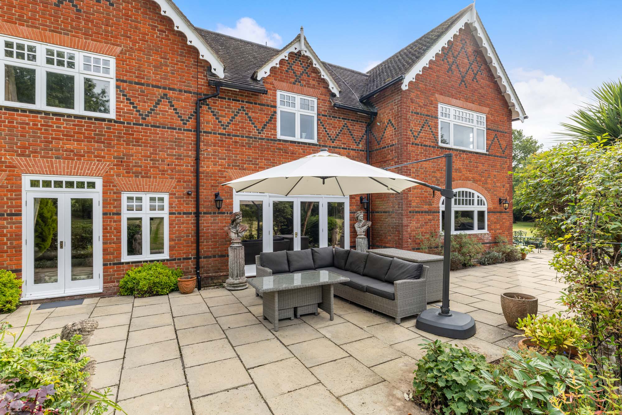 Ideally located within the two-acre plot, the home enjoys views from every window and door over the vast lawns spanning all the way around the home to the mature boundaries creating an exceptional feeling of space.