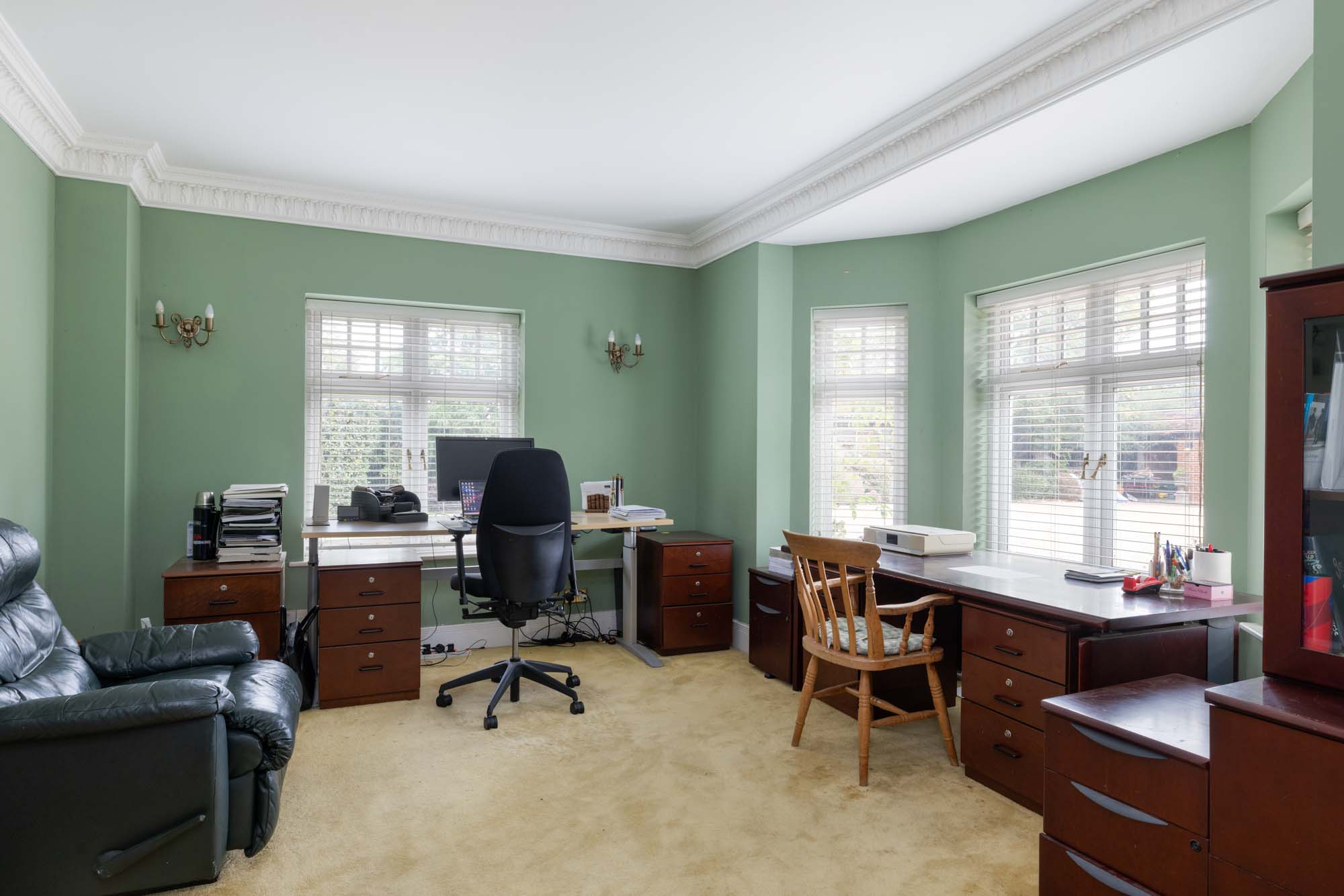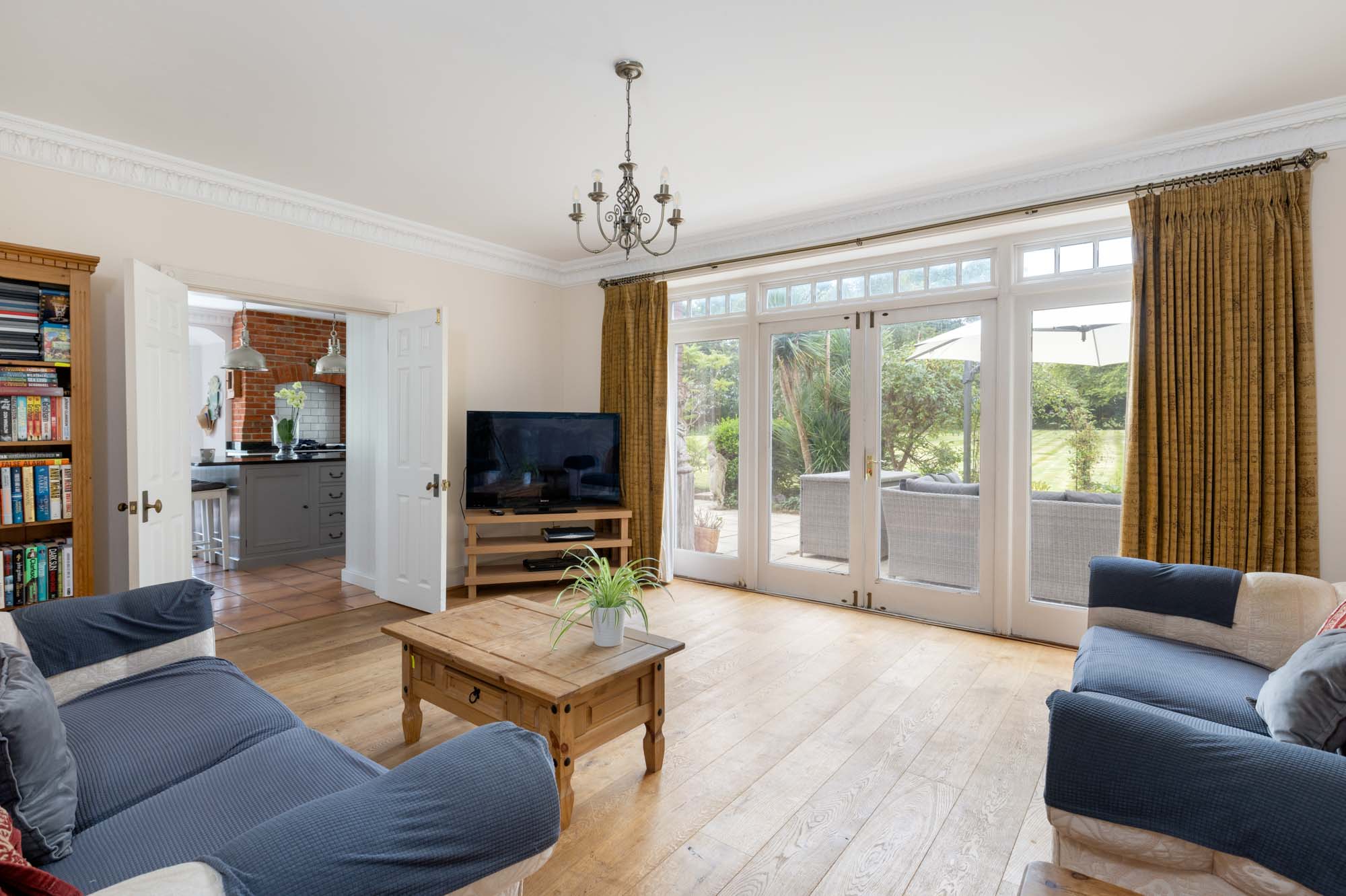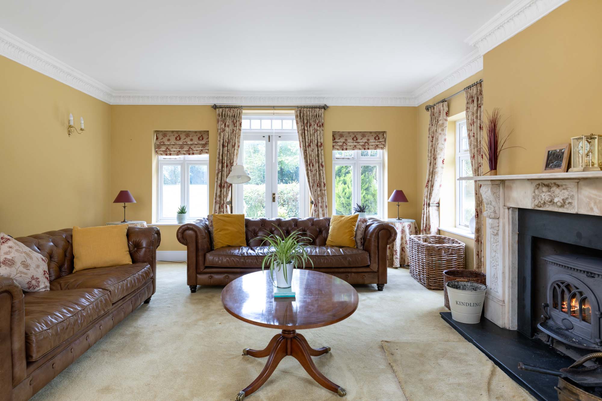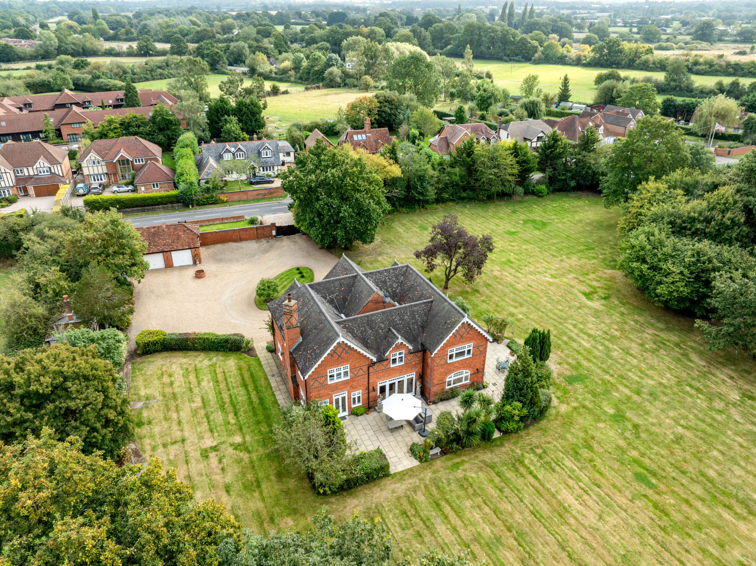 Ideally located within the two-acre plot, the home enjoys views from every window and door over the vast lawns spanning all the way around the home to the mature boundaries creating an exceptional feeling of space.