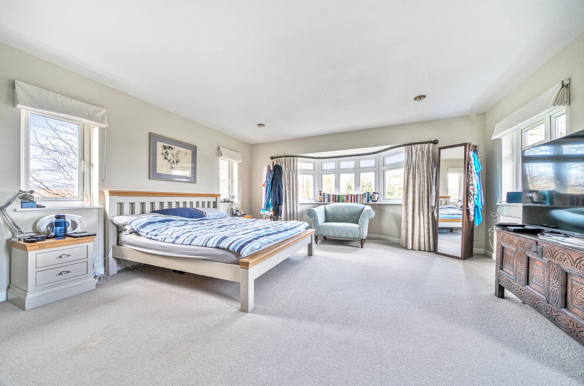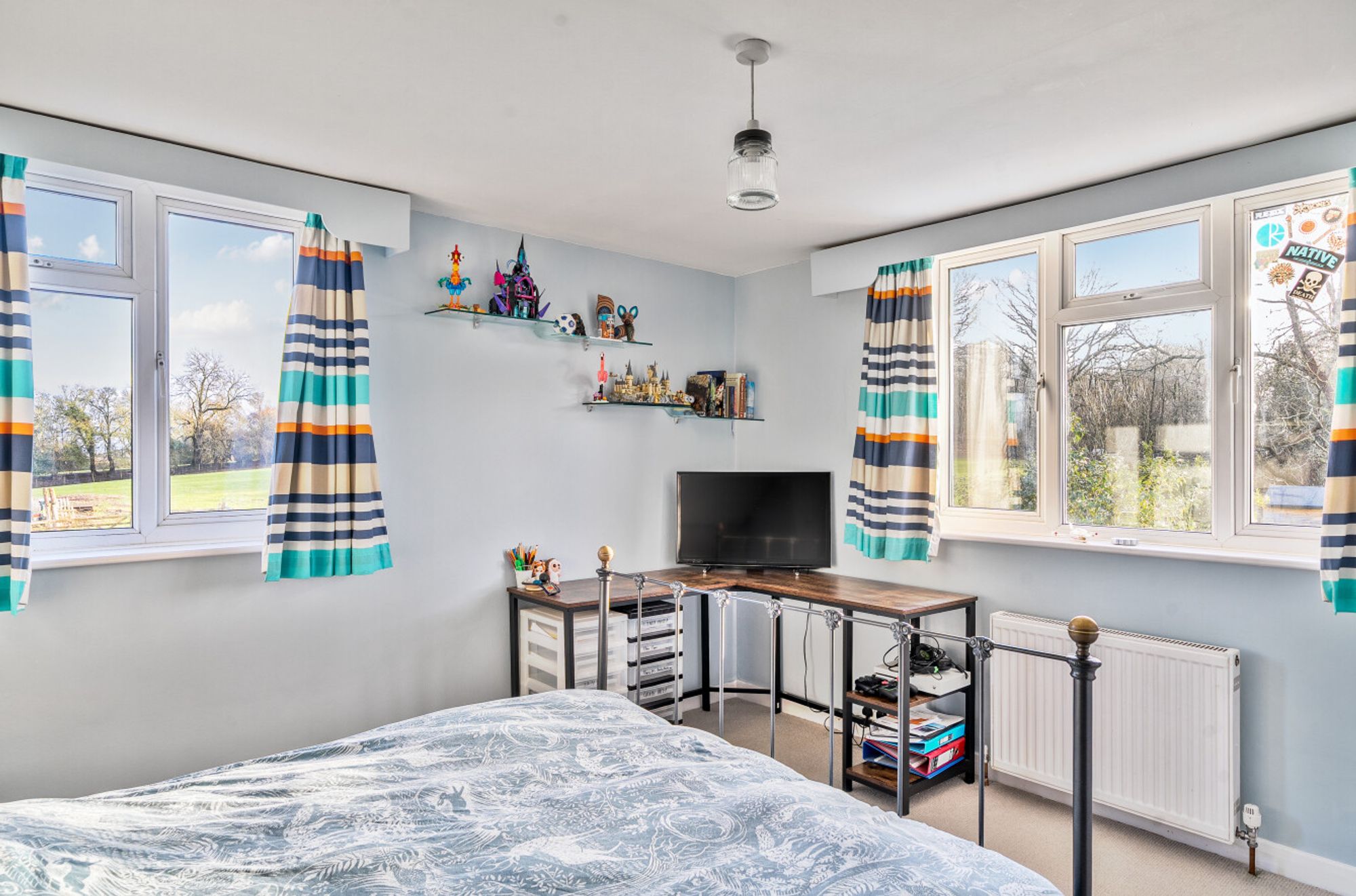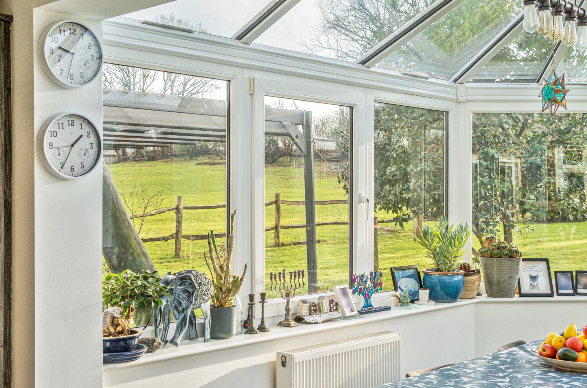 At the heart of the home lies a large kitchen/dining room overlooking the garden and paddocks, ideal for family gatherings and informal entertaining. There are three reception rooms offering flexibility for sitting, dining, home working or playroom use. The accommodation is bright and well balanced, with views and access onto the surrounding gardens that reinforce the strong connection to the outdoors.