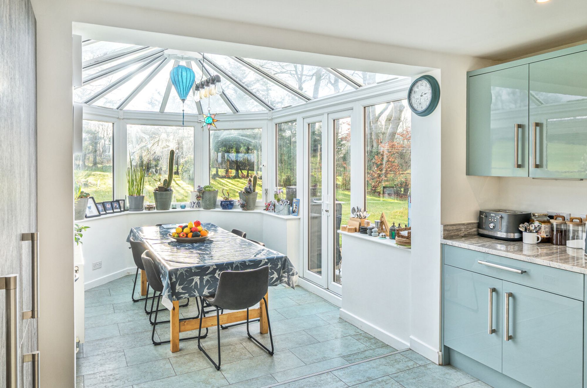 Originally built in the 1930s, the house has been thoughtfully modernised and extended over time, resulting in well-proportioned accommodation that remains sympathetic to its origins while offering the practicalities expected of modern family living. The principal house provides five bedrooms and three bathrooms, arranged over two floors, with a layout that flows comfortably for both everyday life and entertaining.