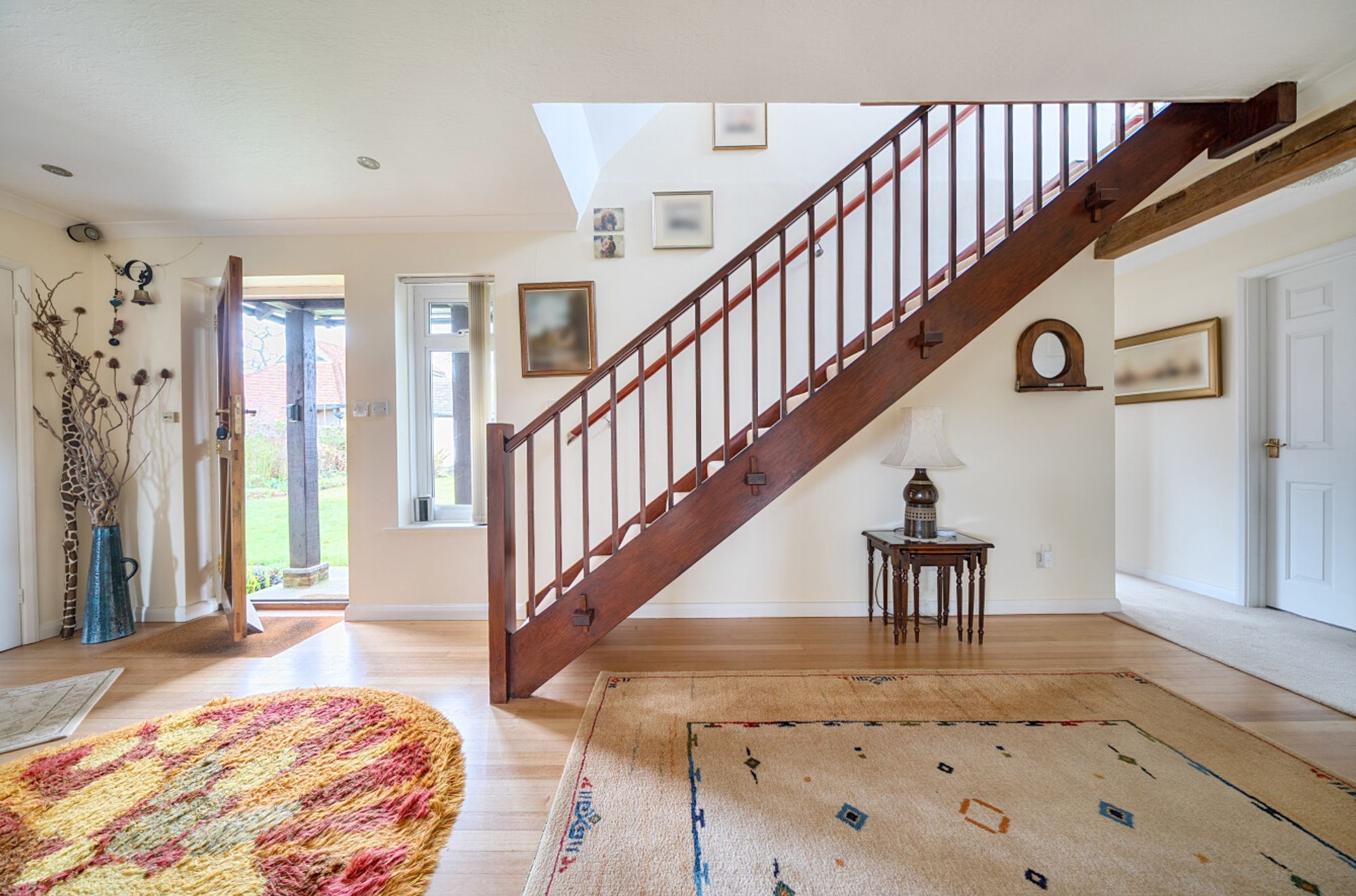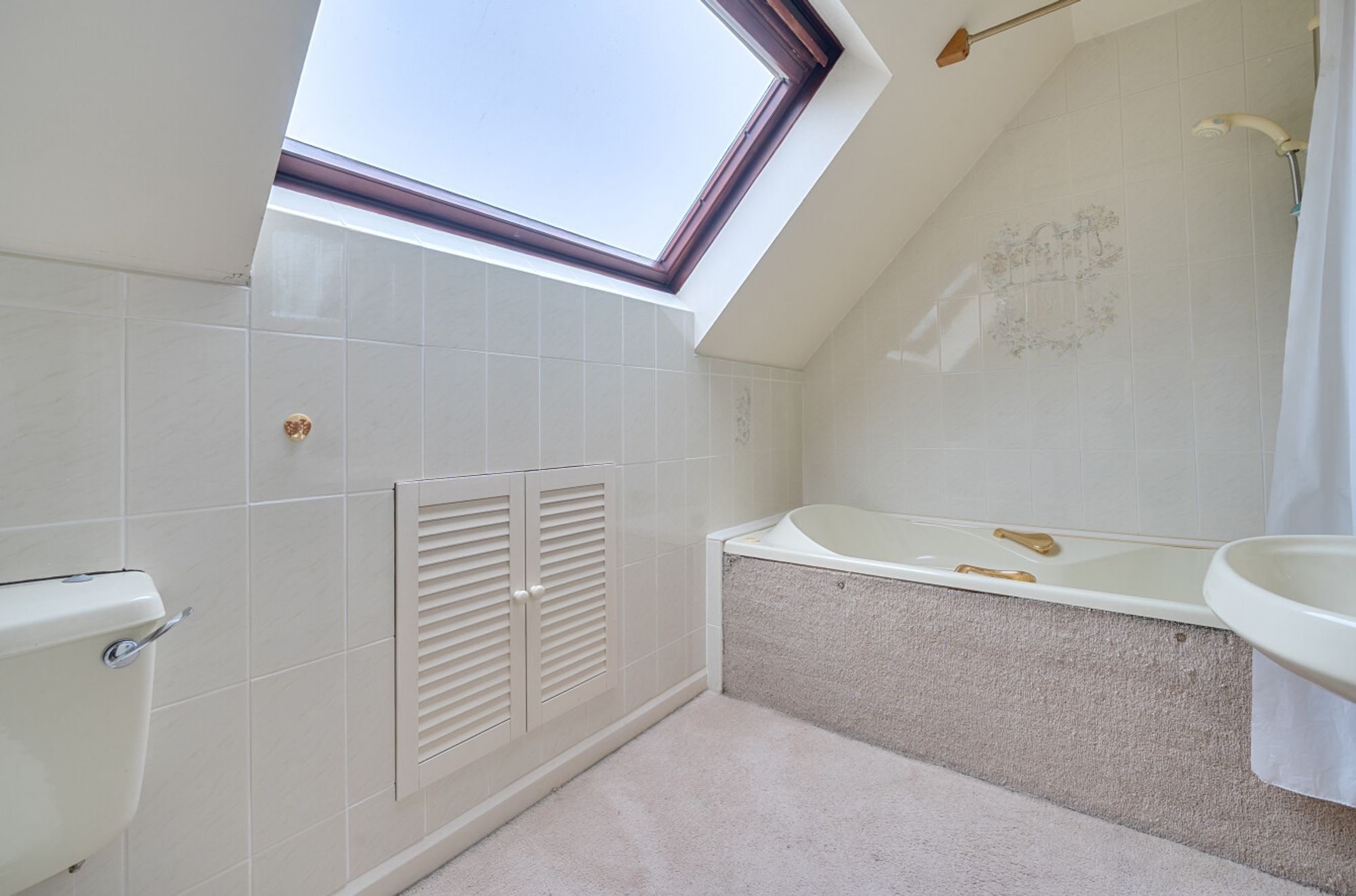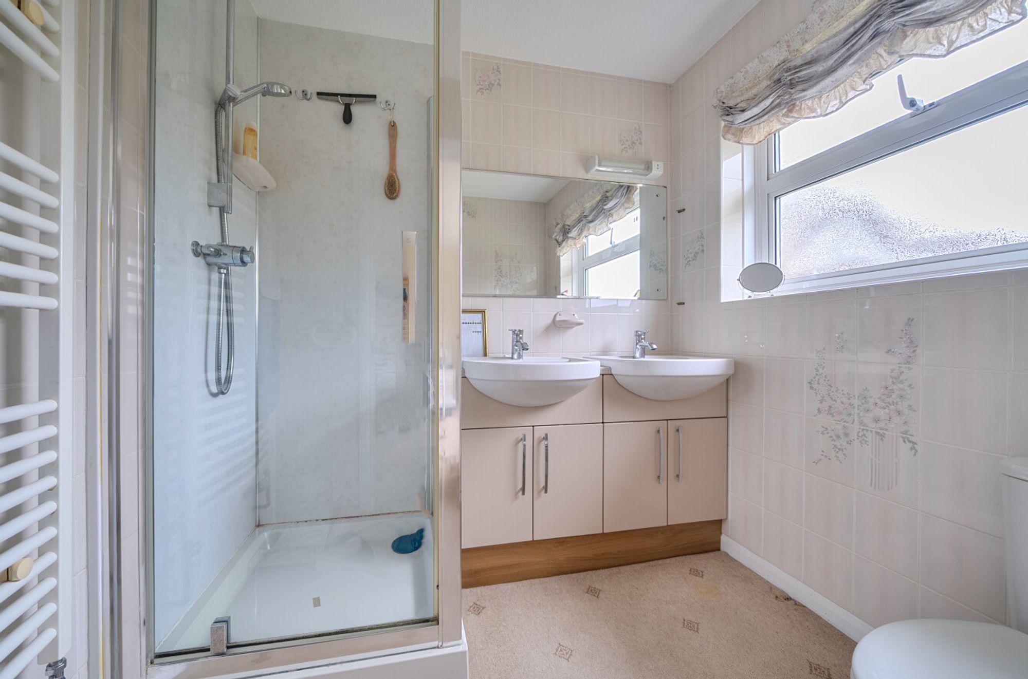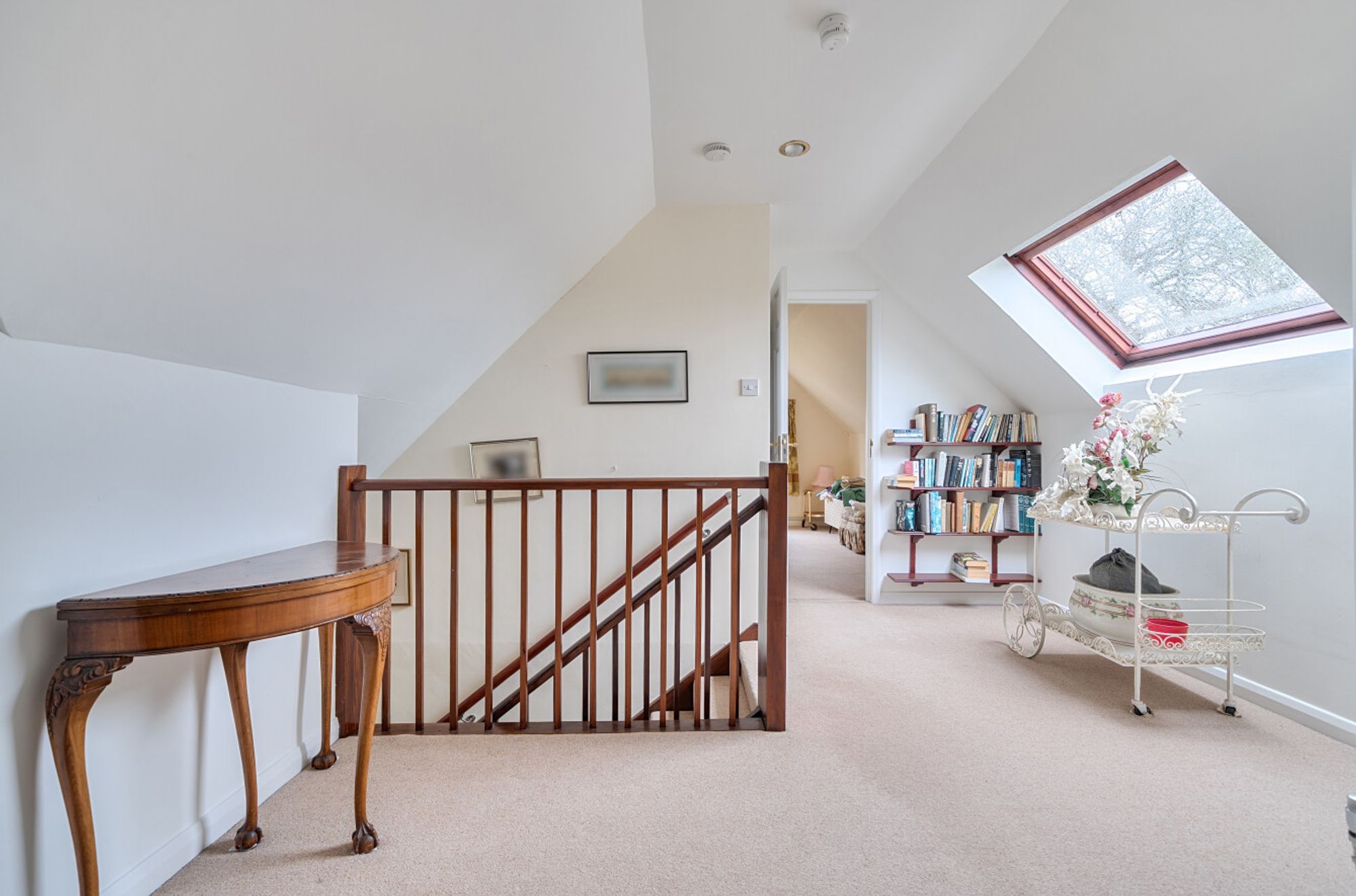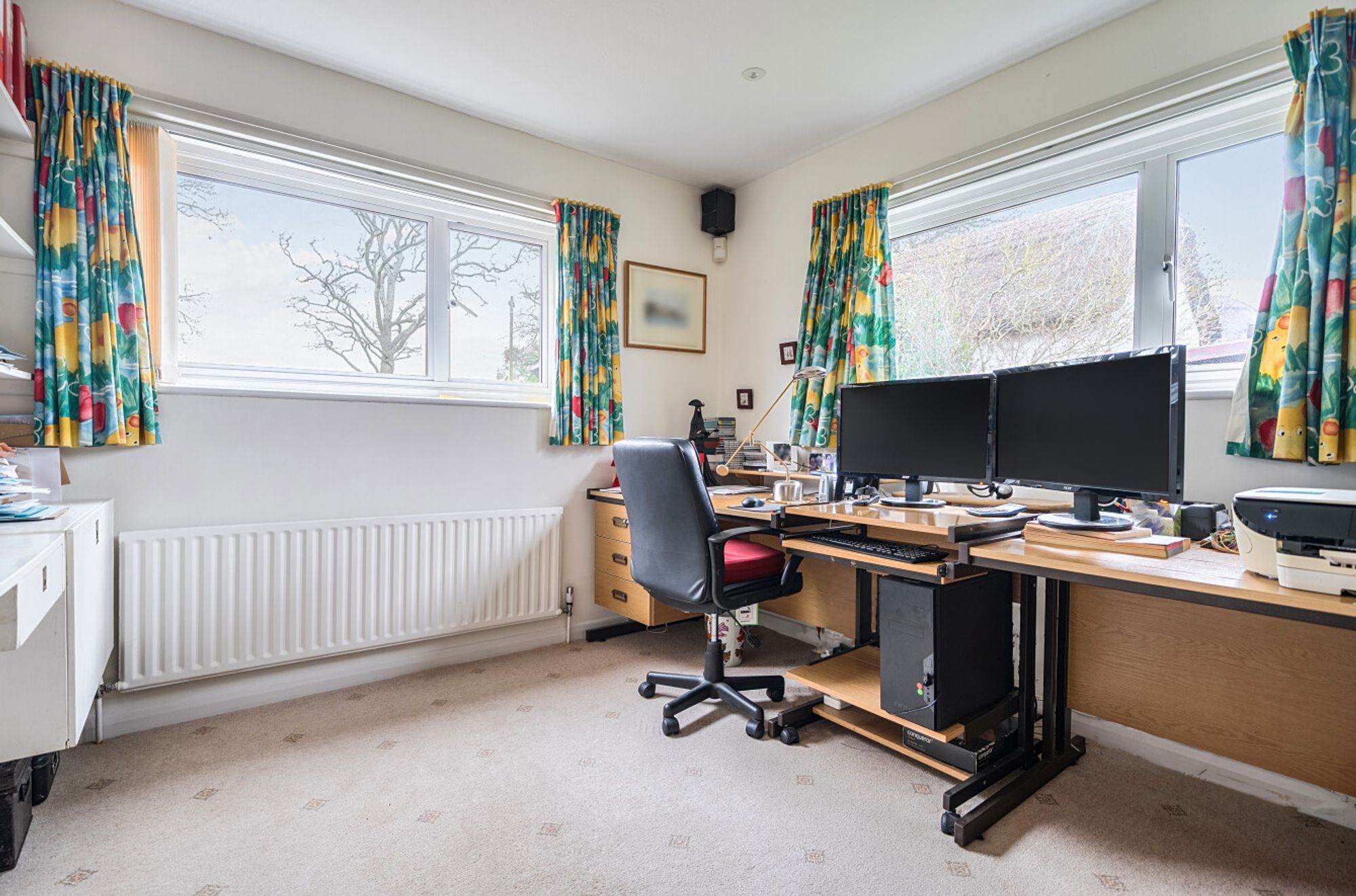 Currently the principal bedroom is on the ground floor with en suite shower room, as well as two further double bedrooms served by an additional bathroom – one of which is currently used as a study. Climbing the stairs to the first floor you’ll find two further double bedrooms and a shared bathroom, additionally there is access to a large loft-storage. Overall, the layout offers an excellent foundation, whether for modernisation or a more comprehensive re-imagining.