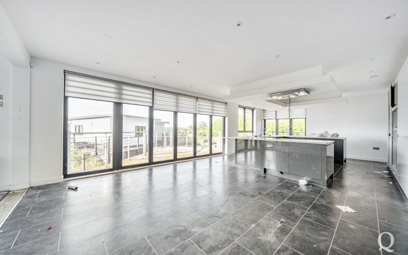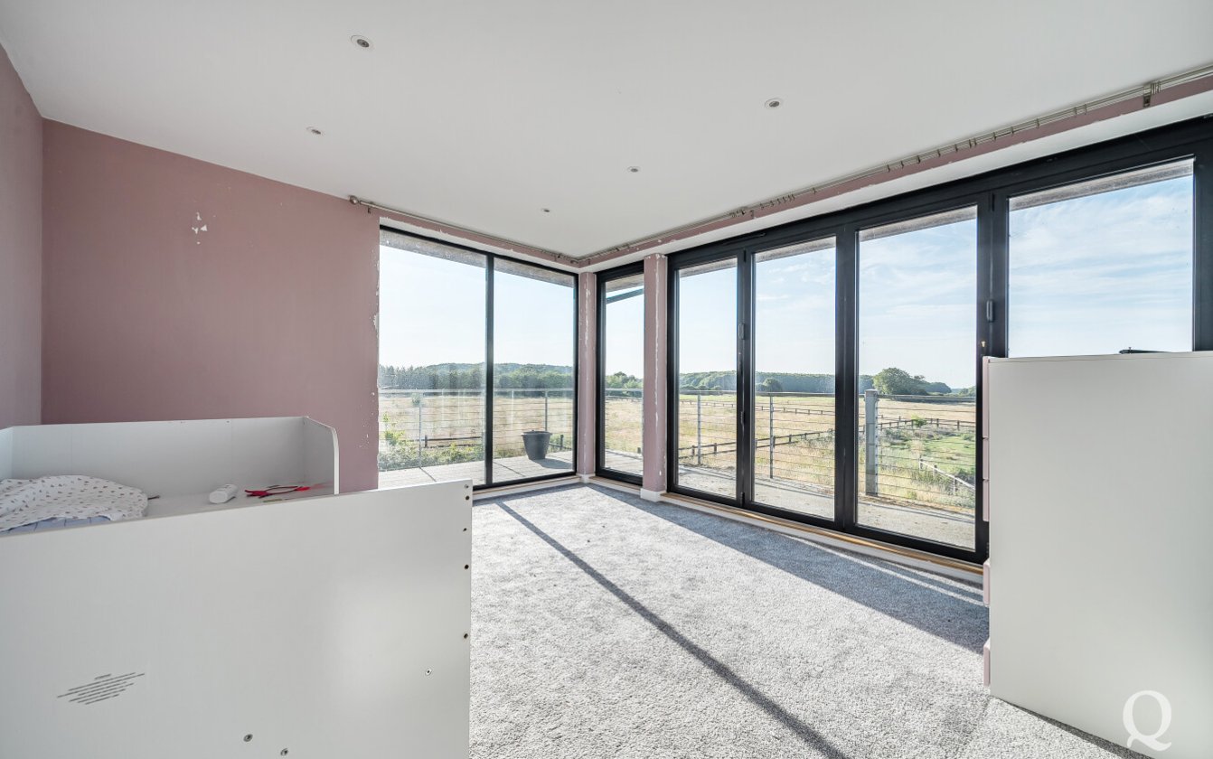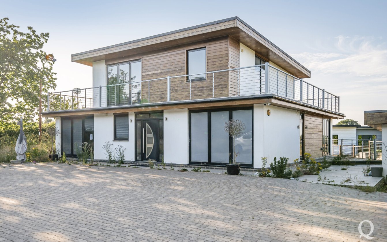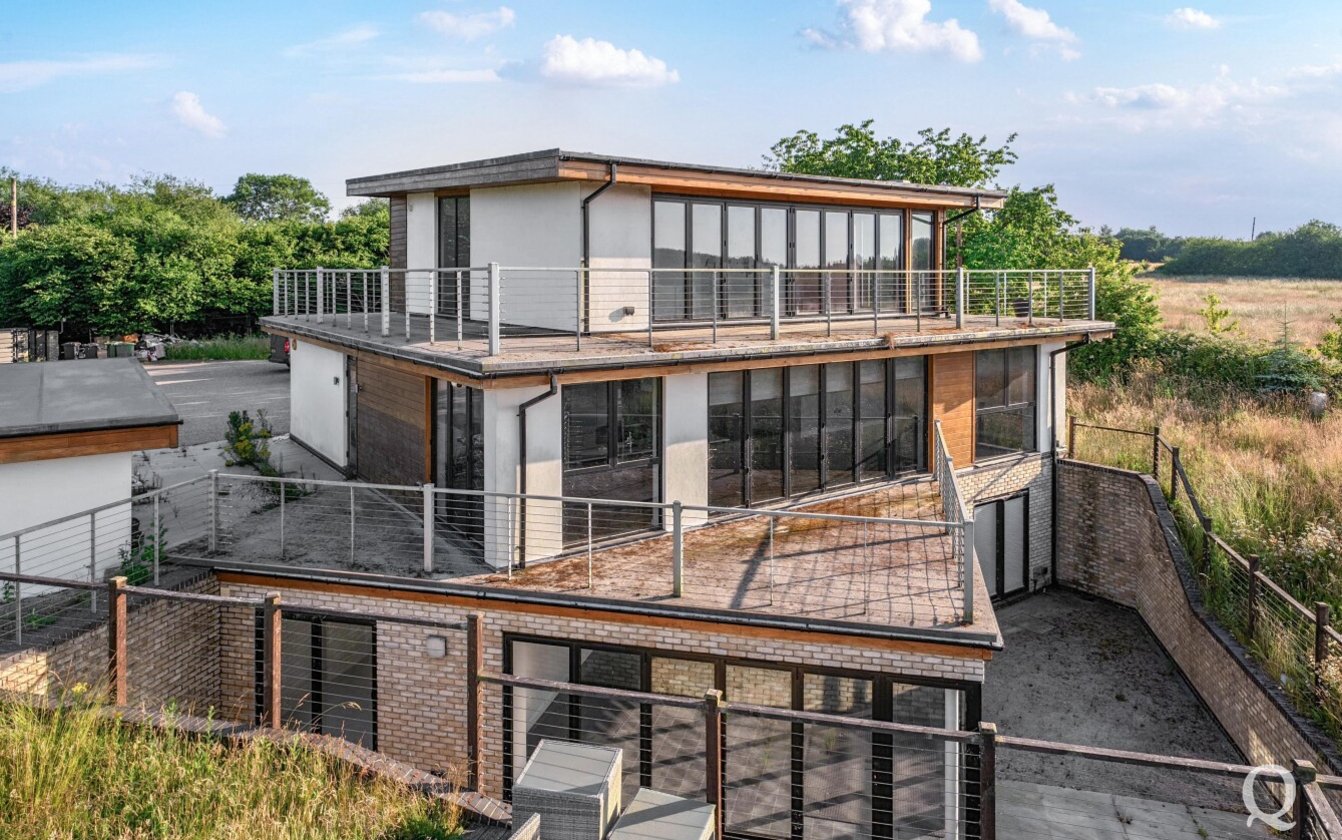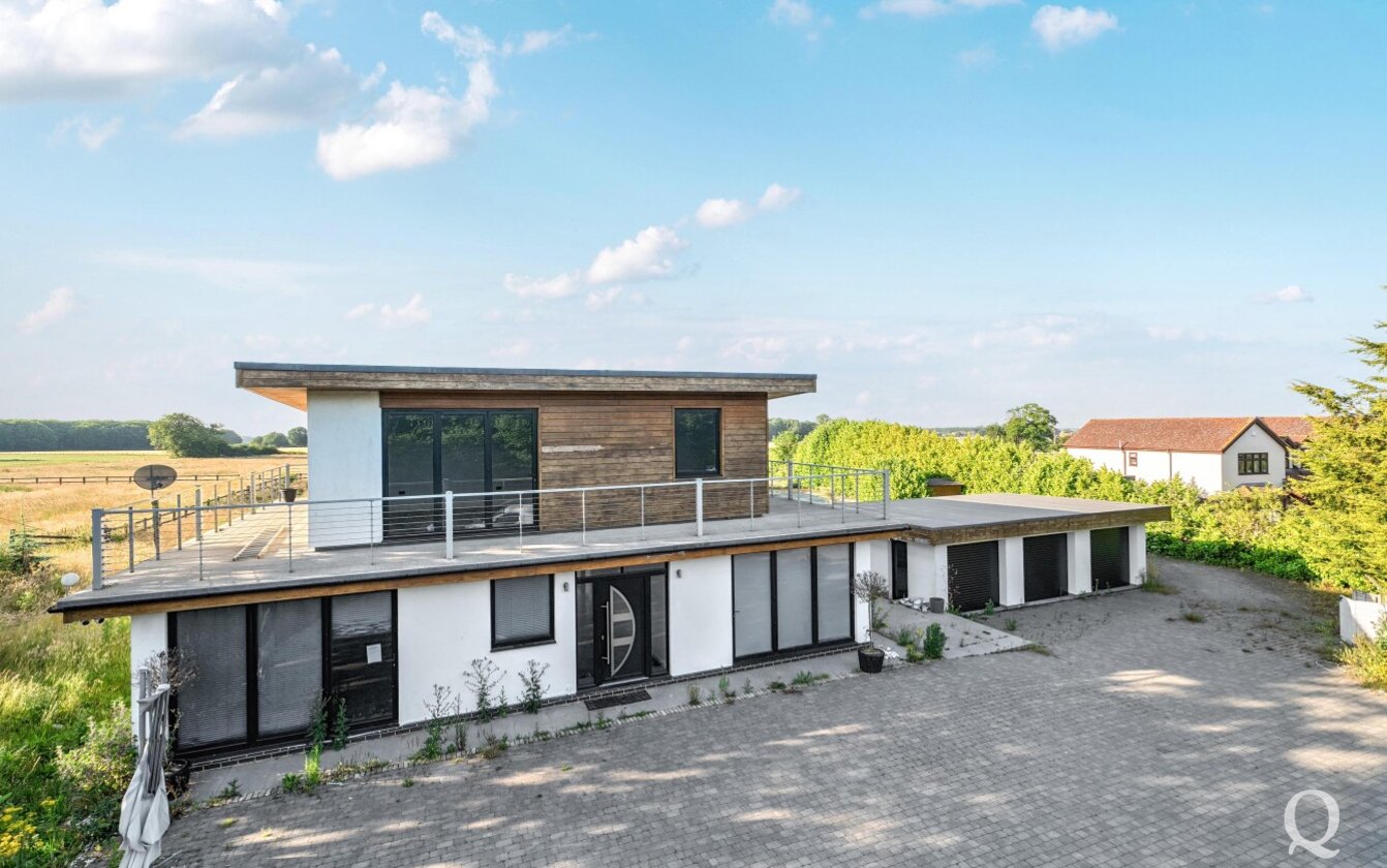 Offered for sale with no onward chain, this striking property presents a rare opportunity to acquire a fine example of modern architecture set within approximately 10 acres of land. Arranged over three expansive floors, the home offers an impressive blend of contemporary design and generous proportions. While certain repairs are required to the kitchen and most of the bathrooms, the property holds immense potential for enhancement and restoration. The lower ground floor opens out to a sunken courtyard, while the second floor benefits from a spectacular 360-degree walk-around terrace, offering panoramic views of the surrounding landscape. The spacious kitchen and dining area is ideal for entertaining, featuring two sets of bi-fold doors that lead onto a balcony. The master bedroom includes a private dressing room and ensuite, with five additional bedrooms—three of which also boast ensuite facilities. Externally, the grounds include a large garden with a swimming pool, a triple garage, paddocks, and a self-contained two-bedroom annexe/pool house, offering versatile accommodation for guests or extended family. The property is located just under a mile from the village of Stockbury, within easy reach of the A249, M2 and M20 giving access to the county town of Maidstone and nearby Sittingbourne with mainline railway station for services to London. Viewing is strongly recommended and appointments can be made via our office.