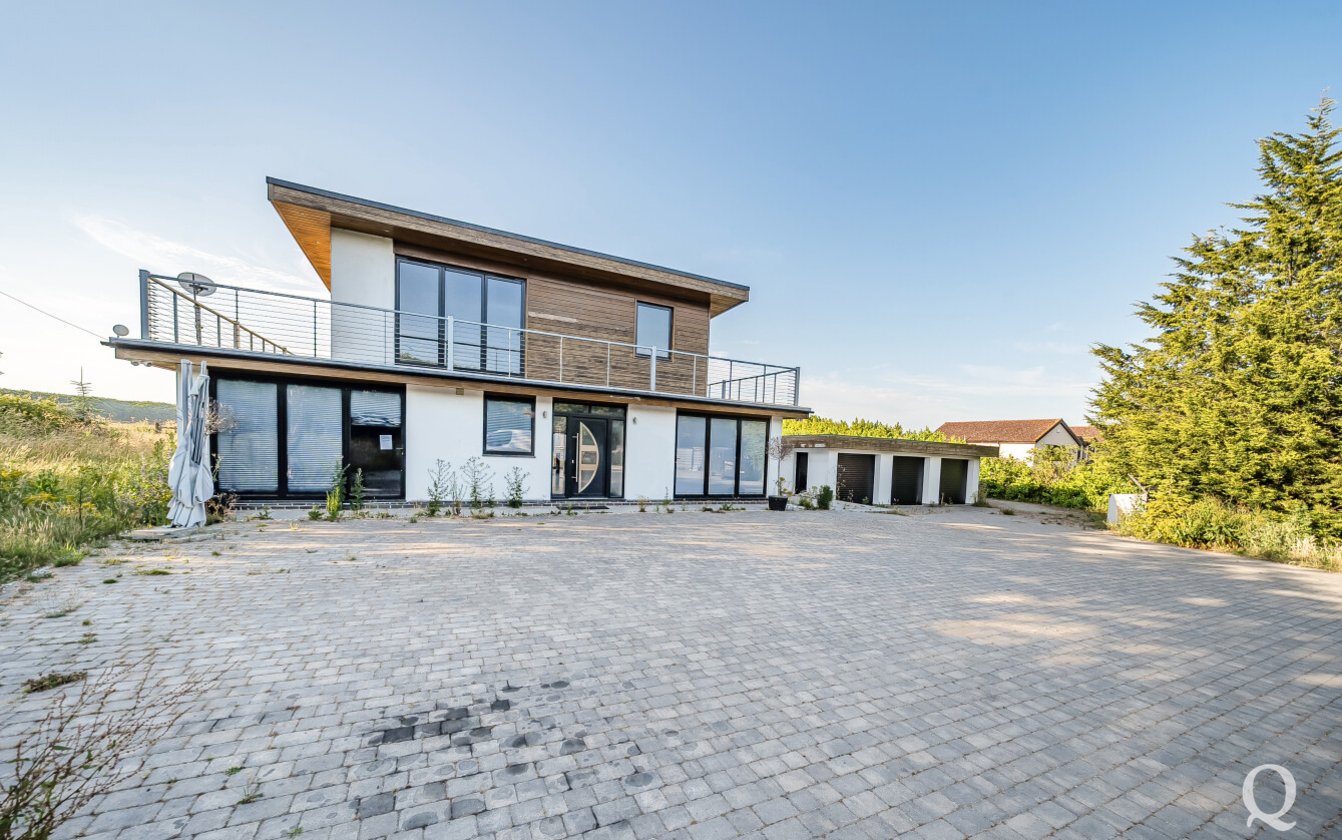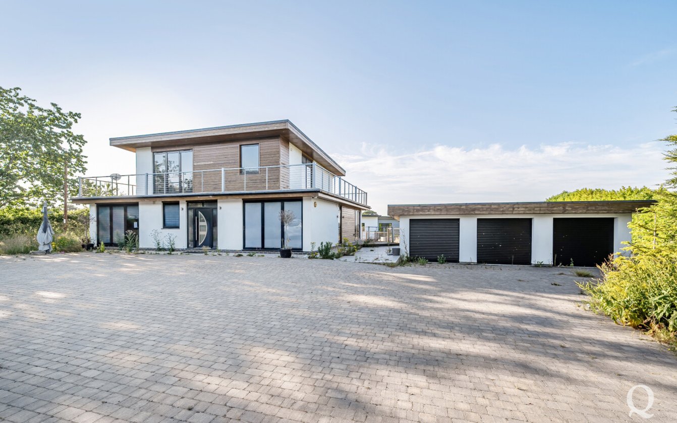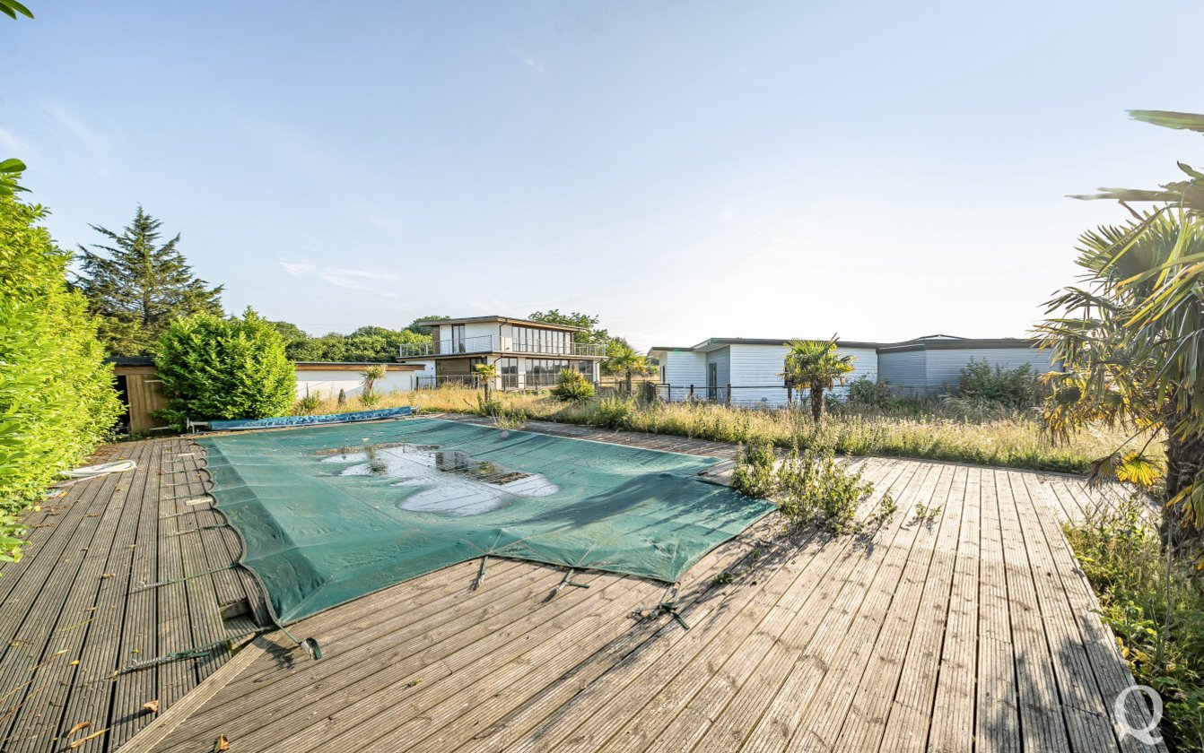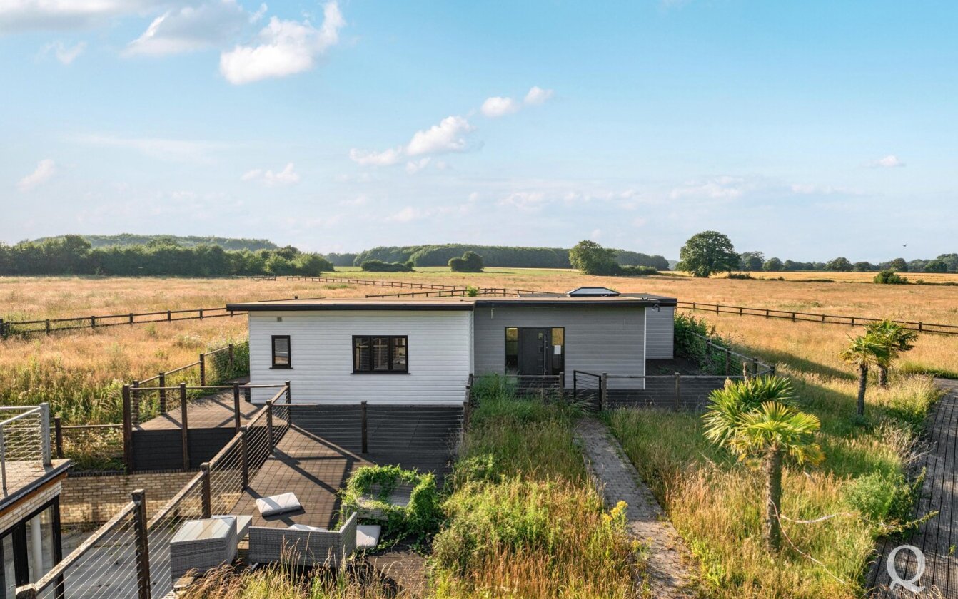 Offered for sale with no onward chain, this striking property presents a rare opportunity to acquire a fine example of modern architecture set within approximately 10 acres of land. Arranged over three expansive floors, the home offers an impressive blend of contemporary design and generous proportions. While certain repairs are required to the kitchen and most of the bathrooms, the property holds immense potential for enhancement and restoration. The lower ground floor opens out to a sunken courtyard, while the second floor benefits from a spectacular 360-degree walk-around terrace, offering panoramic views of the surrounding landscape. The spacious kitchen and dining area is ideal for entertaining, featuring two sets of bi-fold doors that lead onto a balcony. The master bedroom includes a private dressing room and ensuite, with five additional bedrooms—three of which also boast ensuite facilities. Externally, the grounds include a large garden with a swimming pool, a triple garage, paddocks, and a self-contained two-bedroom annexe/pool house, offering versatile accommodation for guests or extended family. The property is located just under a mile from the village of Stockbury, within easy reach of the A249, M2 and M20 giving access to the county town of Maidstone and nearby Sittingbourne with mainline railway station for services to London. Viewing is strongly recommended and appointments can be made via our office.