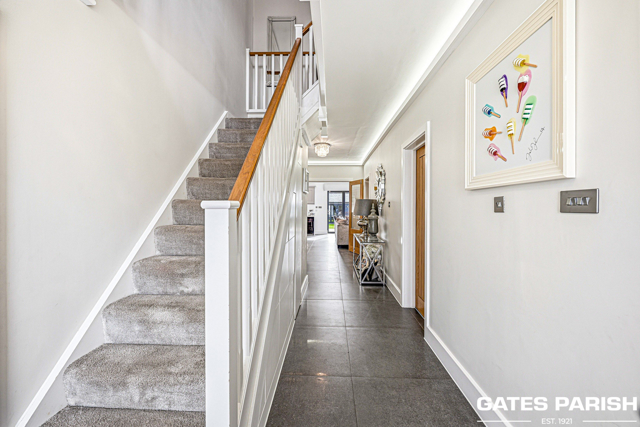 Upstairs, the property continues to impress with four generous double bedrooms. Two bedrooms benefit from their own ensuite bathrooms, while the principal suite also features a dedicated dressing area, creating a luxurious private space. A spacious landing enhances the sense of light and space, while also offering potential to extend into the loft (subject to planning permission) should further accommodation be required.