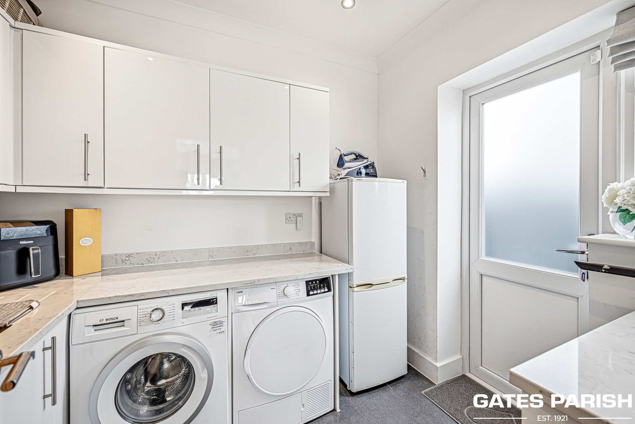 At the heart of the home lies the stunning open-plan kitchen, dining and living space, designed with both entertaining and everyday family life in mind. This exceptional area features bi-fold doors opening onto the rear garden, integrated speakers throughout, and a beautifully designed kitchen with ample workspace and storage. A separate utility room adds further practicality.
