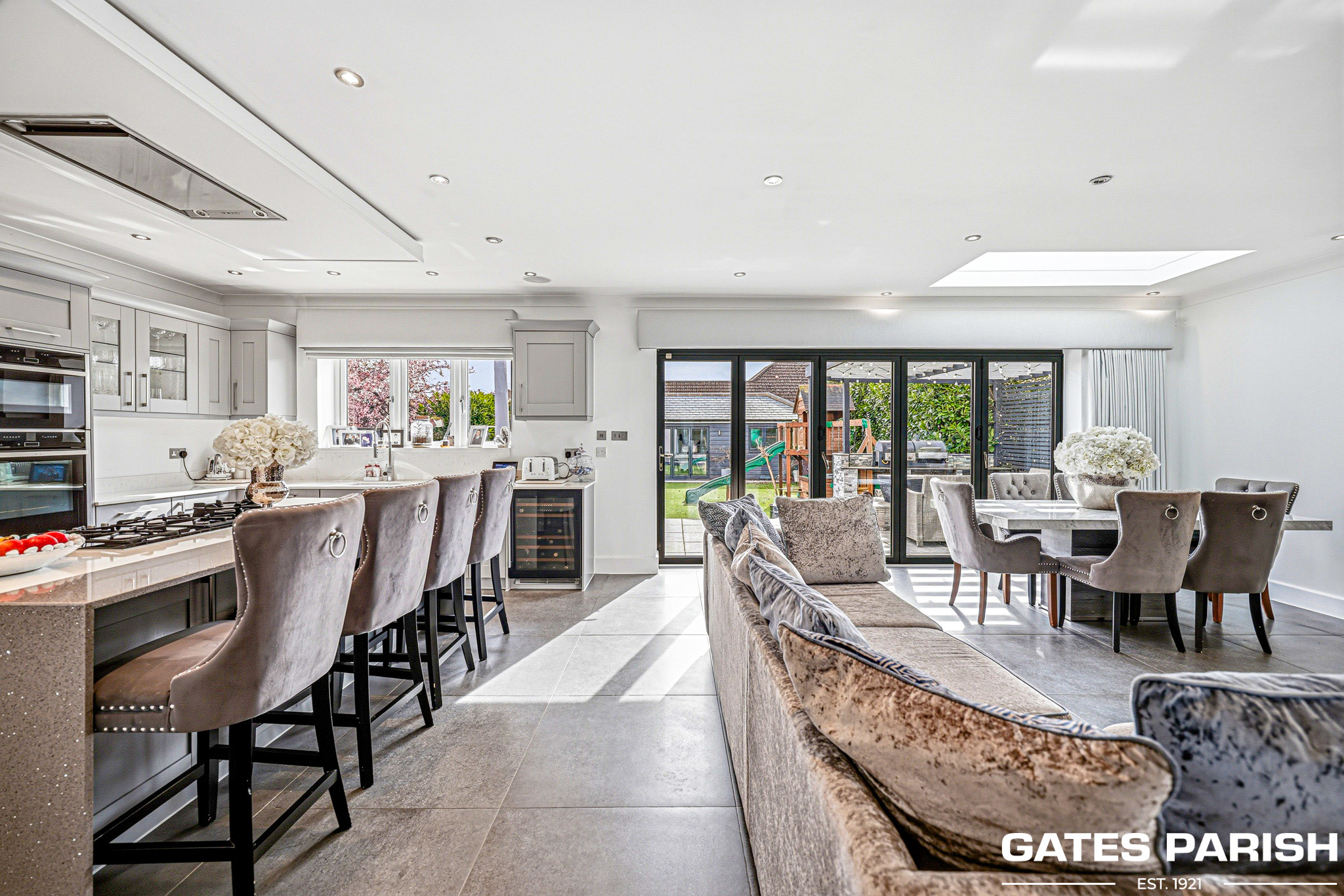 Occupying an impressive 2,380 sq. ft. of beautifully appointed living space, this home has undergone a meticulous redevelopment and extension by the current owners, resulting in a complete renovation from top to bottom. The property now boasts new heating and electrics throughout, alongside underfloor heating across the entire downstairs living areas, creating a home that perfectly combines modern luxury with practical family living.
