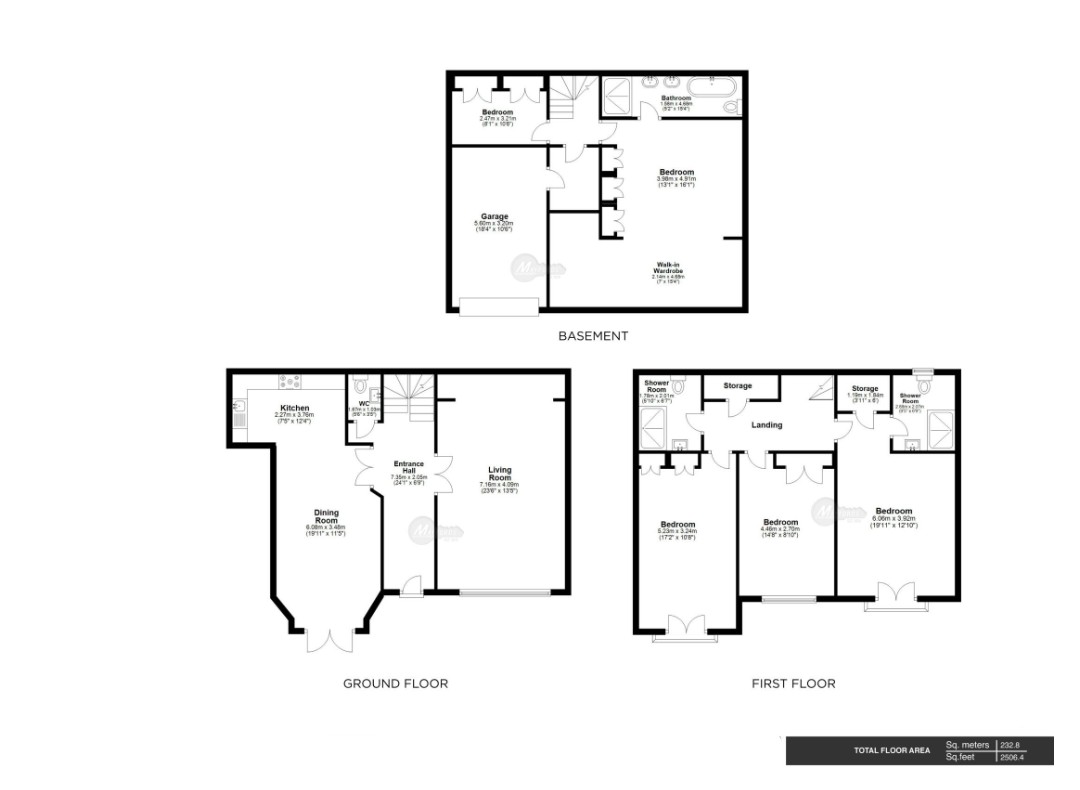 First Floor: Comprises three well-proportioned double bedrooms, two of which benefit from en-suite bathrooms, along with ample built-in storage throughout.
