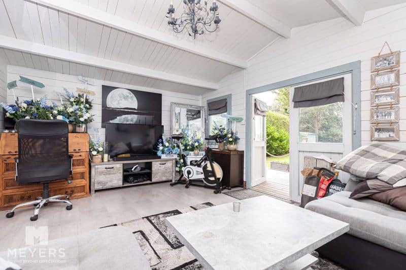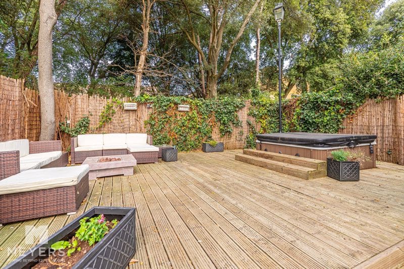 A standout feature is the insulated summer house with power supply, set on a split-level raised decking area nestled along the rear, complete with a hot tub, plenty of space for loungers to soak up the sun, bistro sets and a barbeque perhaps, while an extended patio area leading from the side porch is perfect for outdoor dining and relaxation.