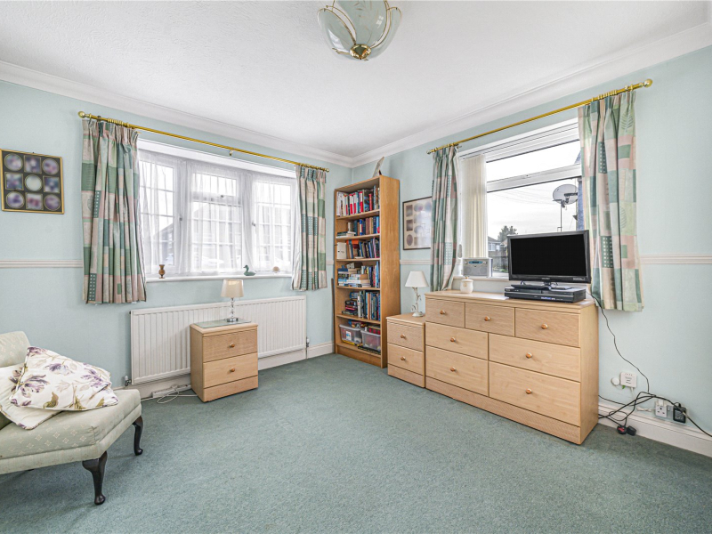 Upon entering the property, you are welcomed by a spacious hallway. To the right are two well-proportioned double bedrooms, both featuring attractive bay windows overlooking the front of the property. The second bedroom benefits from built-in furniture, with ample additional space for freestanding furnishings.