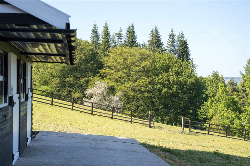 The setting which the property occupies is hard to improve upon – it has superb landscaped gardens which lie predominantly to the front and side and which include an outdoor swimming pool as well as a squash court hidden within the trees. To complement the setting there are approximately 20 acres (8.10 ha) of grassland together with four stables and a tack room.