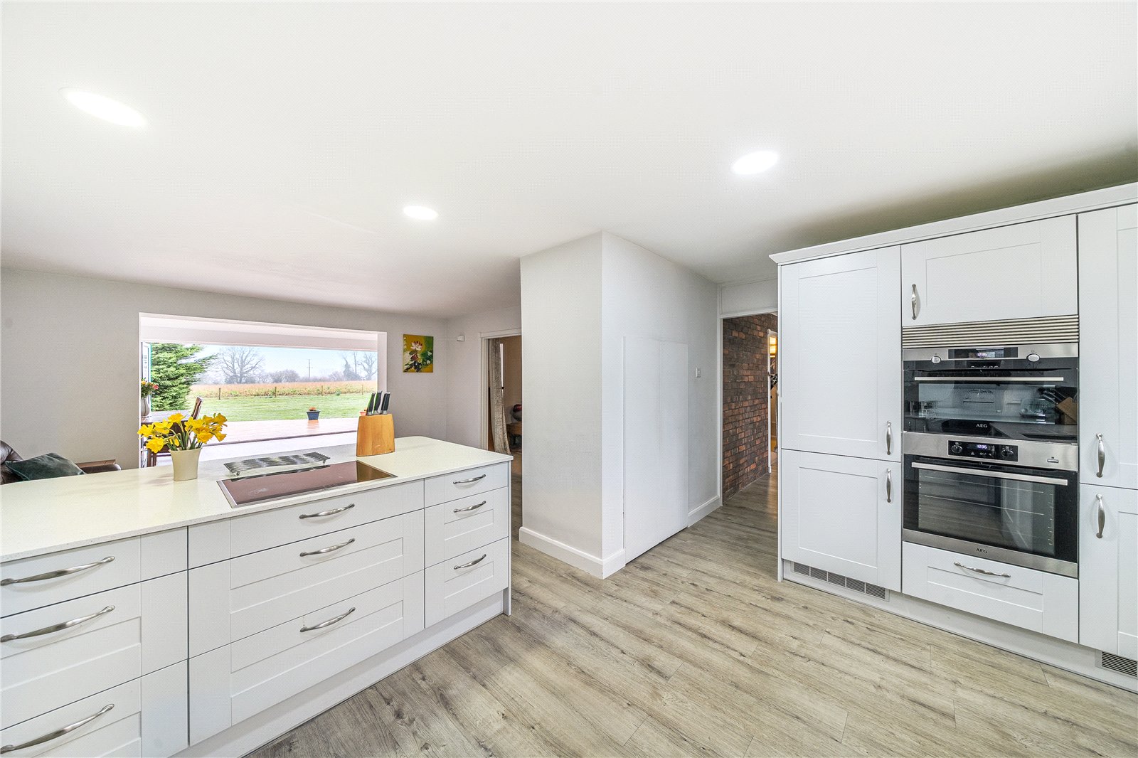 The hub of the home is a beautifully refitted kitchen with a central island and bifold doors that open to the most idyllic views, creating a seamless connection between indoors and outdoors. The property offers four bedrooms, all enjoying stunning outlooks. The 4th bedroom is living area adjacent and is currently being used as an office/snug.