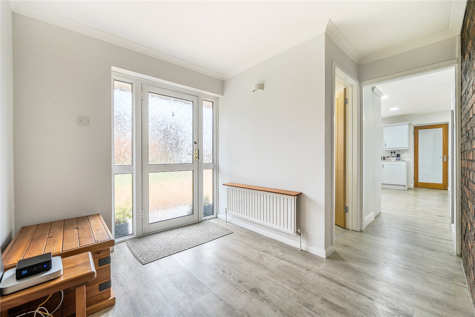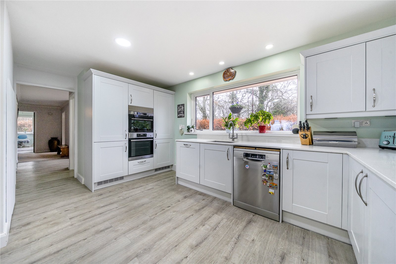 Enter the bungalow into the spacious entrance hall and positioned to the left is the cloakroom with WC, wash hand basin and front aspect window. Centrally positioned is the living room which is open plan to the dining room and has a wood burning stove and to the rear, sliding doors through to the sun room. The sun room has skylights, side and rear aspects windows and double doors providing access onto the garden. The dining room provides access to the kitchen which can also be accessed from the entrance hall. The kitchen features a full range of wall and base units with surfaces over, storage cupboard, built in cooker, gas hob, space for appliances and a front aspect window. Off the kitchen there is an inner hall and additional entrance to the property which also provides access to the double garage, utility and rear garden.
