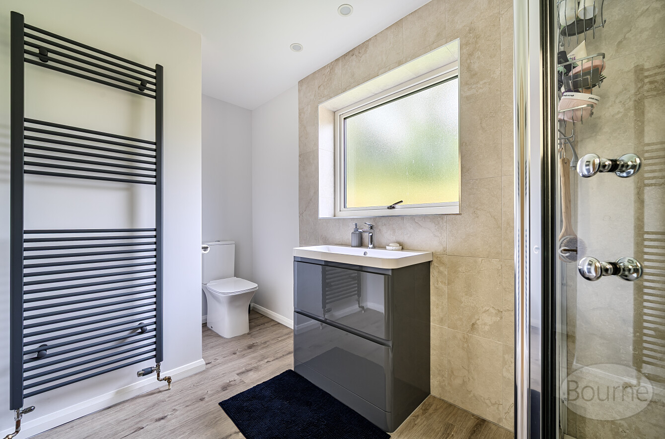 Positioned to the right hand side of the entrance hall are the bedrooms, all of which are double in size. The master bedroom is positioned towards the rear and has fitted wardrobes and an en suite with shower cubicle, wash hand basin, WC and a side aspect window. Completing the accommodation is a shower room with corner shower cubicle, WC, wash hand basin and a front aspect window.