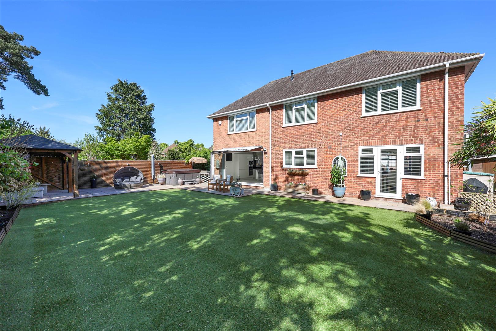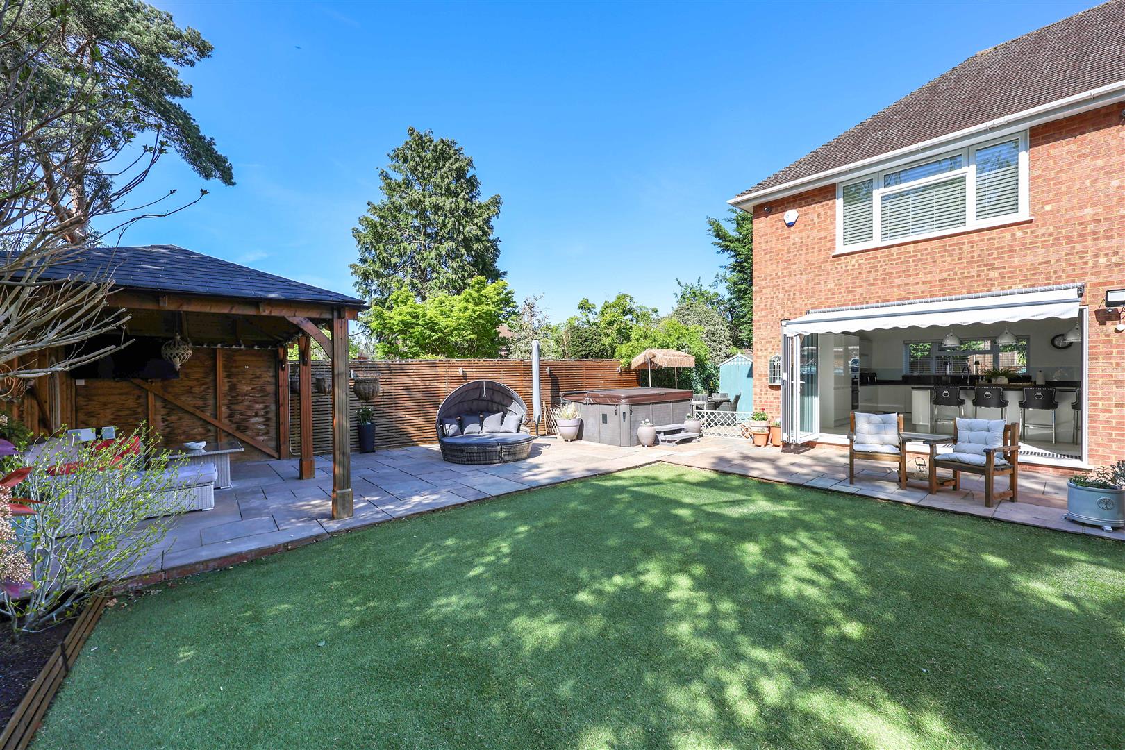 A stunning four-bedroom detached home located on The Chantry, one of Hillingdon’s most sought-after roads. This impressive home has been thoughtfully extended and beautifully modernised throughout, offering spacious rooms and modern interior. The property further benefits from a host of premium features including a newly installed alarm system, CCTV, underfloor heating, and air conditioning. Stylish interiors are complemented by original parquet flooring, while the kitchen is fully equipped with high-quality integrated appliances. Externally, the home is enhanced by well-designed outside lighting. To the front property there is off street parking for multiple cars and an artificial lawn. To the rear of the property there a private south-west facing rear garden featuring a large patio area, low-maintenance artificial lawn, and a sheltered seating area, all bordered by mature trees providing excellent privacy.