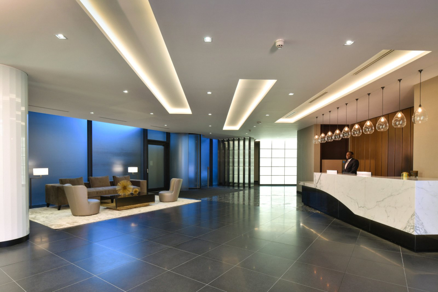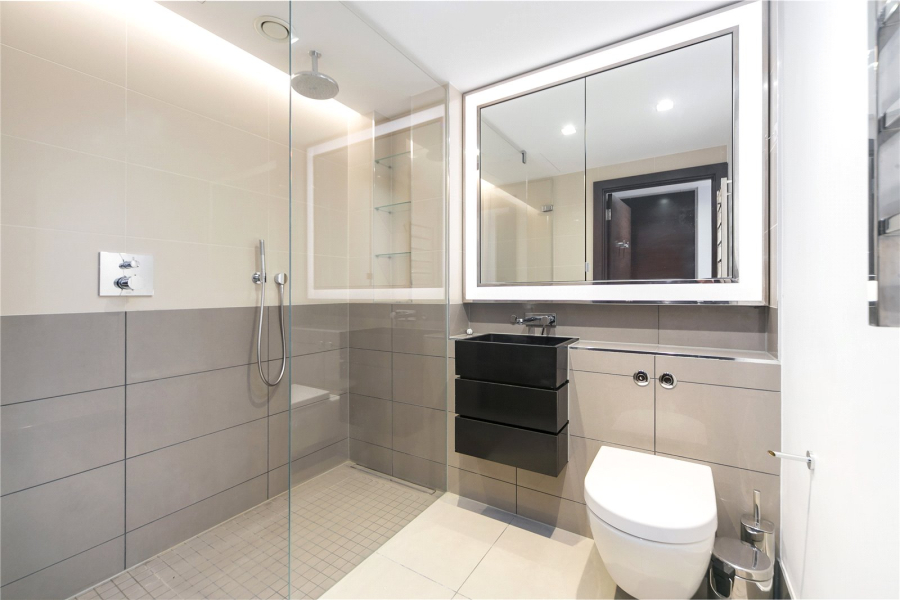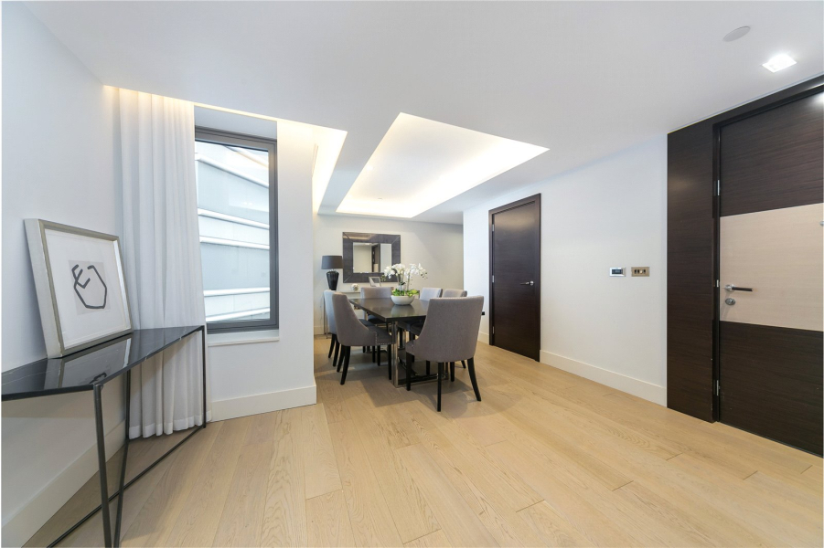 Designed by Foster and Partners, residents of The Corniche benefit from a Skyline Club Lounge on the 19th floor, swimming pool, spa and vitality room, bowling, private cinema and the Skyline Club. The apartment also benefits from the right to park.