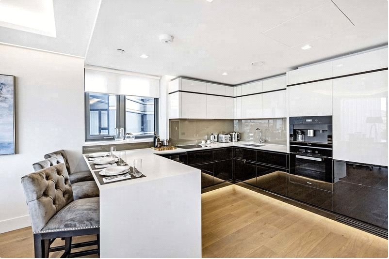 The apartment comprises a stylish open plan reception area with a high specification modern fitted kitchen, two double bedrooms (one with an en-suite), fitted wardrobes and a contemporary family bathroom. Also benefitting a private balcony with direct views of the River Thames.