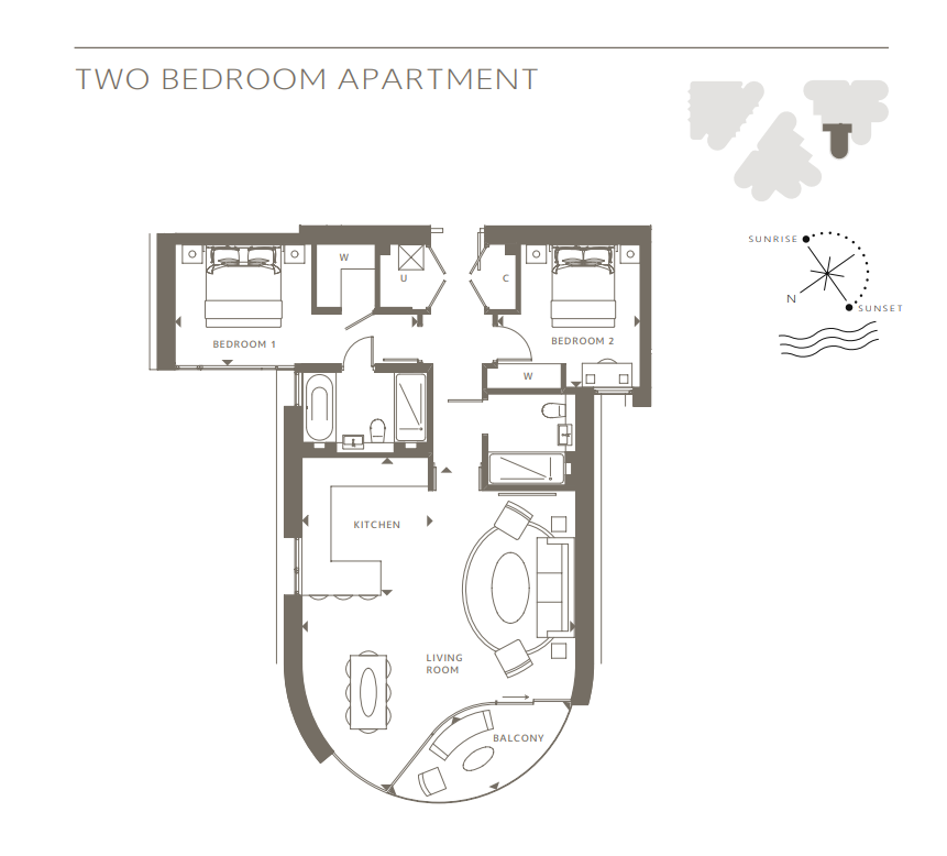 A stunning 985 sq ft, two bedroom, two bathroom 7th floor apartment offering direct river views.