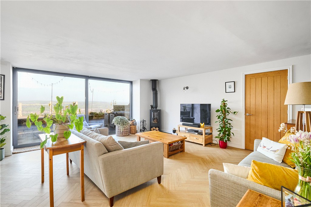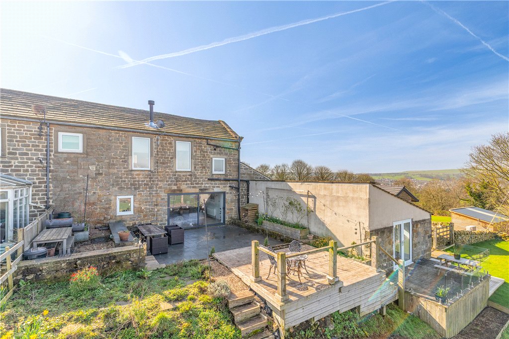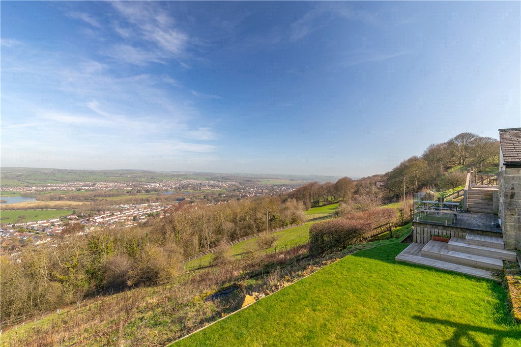 Having probably the finest views of a property in the Otley area, a substantial, beautifully appointed and imaginatively designed converted barn with roughly 2800 sq.ft. (267 sq.m) of space, including three substantial reception areas, a master bedroom with galleried portion and ensuite, three further bedrooms and two bath/shower rooms together with scope for further extension, with parking, gardens and land in all stretching to 0.75 acres, conveniently located for Otley, Guiseley and Menston.