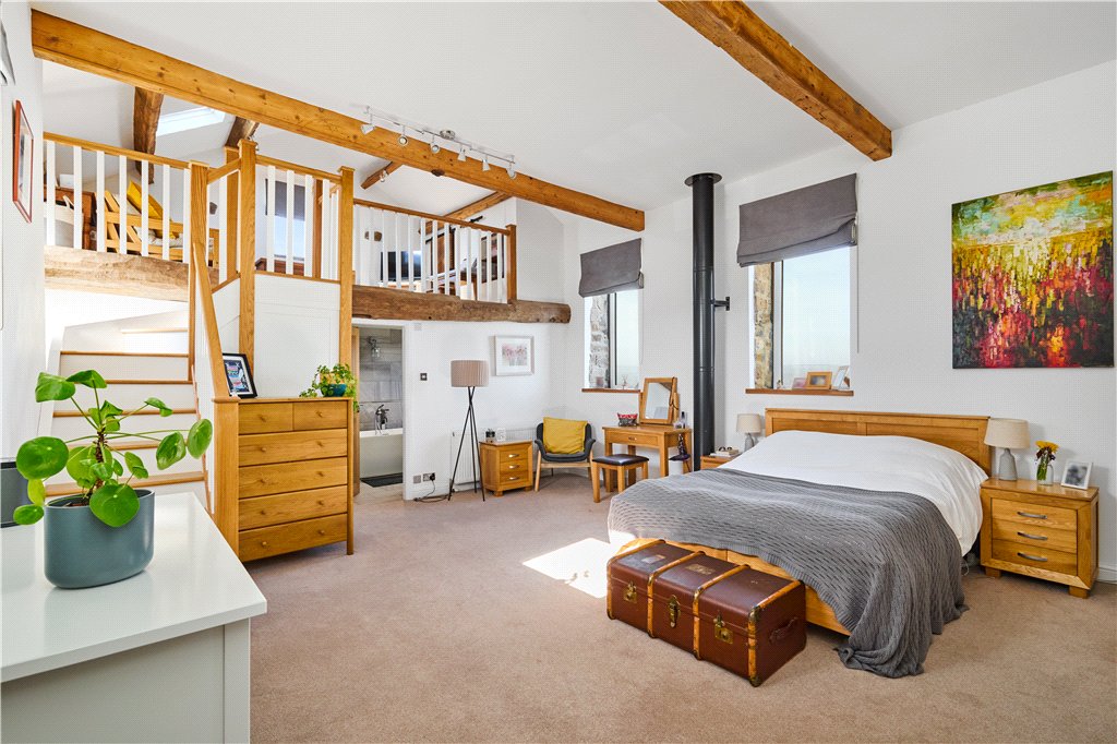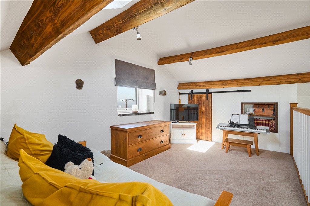 As the photographs show, the living space is appointed and finished to an exceptional standard, and benefits from mains electricity, water and drainage with gas central heating and double glazing. It is approached by a central hallway leading to a substantial family kitchen, which in turn leads to a large games room and a lounge with stunning views over the town’s rooftops the Wharfe valley. There is a ground floor bedroom with ensuite and two further bedrooms. A small flight of stairs leads to the master bedroom having an ensuite and walk-in wardrobe with stairs leading to a delightful galleried mezzanine. There is further scope for extension into a semi converted integral 'barn' area subject to the necessary consents.