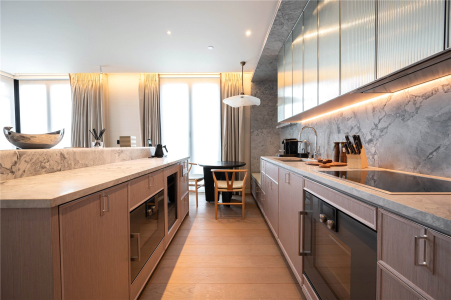 This fifth-floor, one-bedroom, two-bathroom apartment spans 646 sq. ft (60 sq. m) and combines the elegance of a private home with the five-star luxury and service of the Mandarin Oriental Hotel.