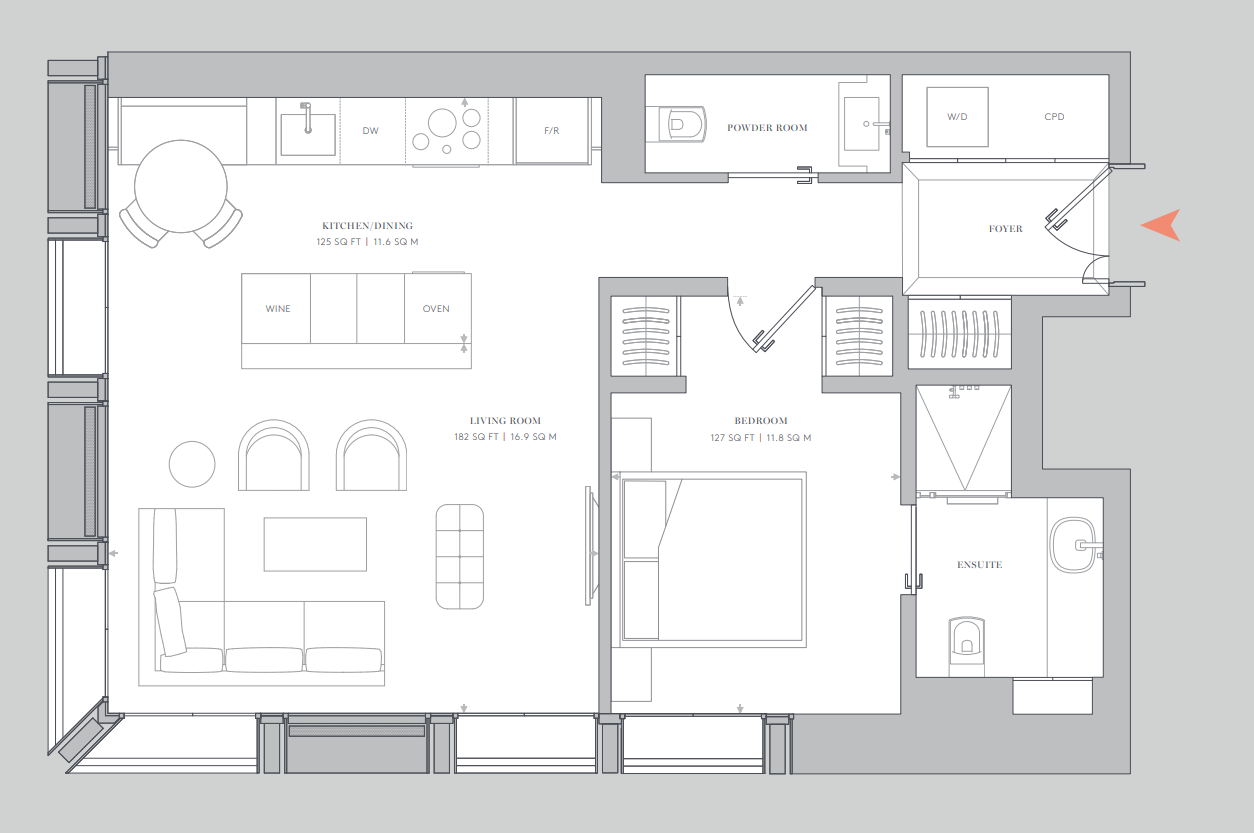 • 1 Bedroom / 2 Bathrooms