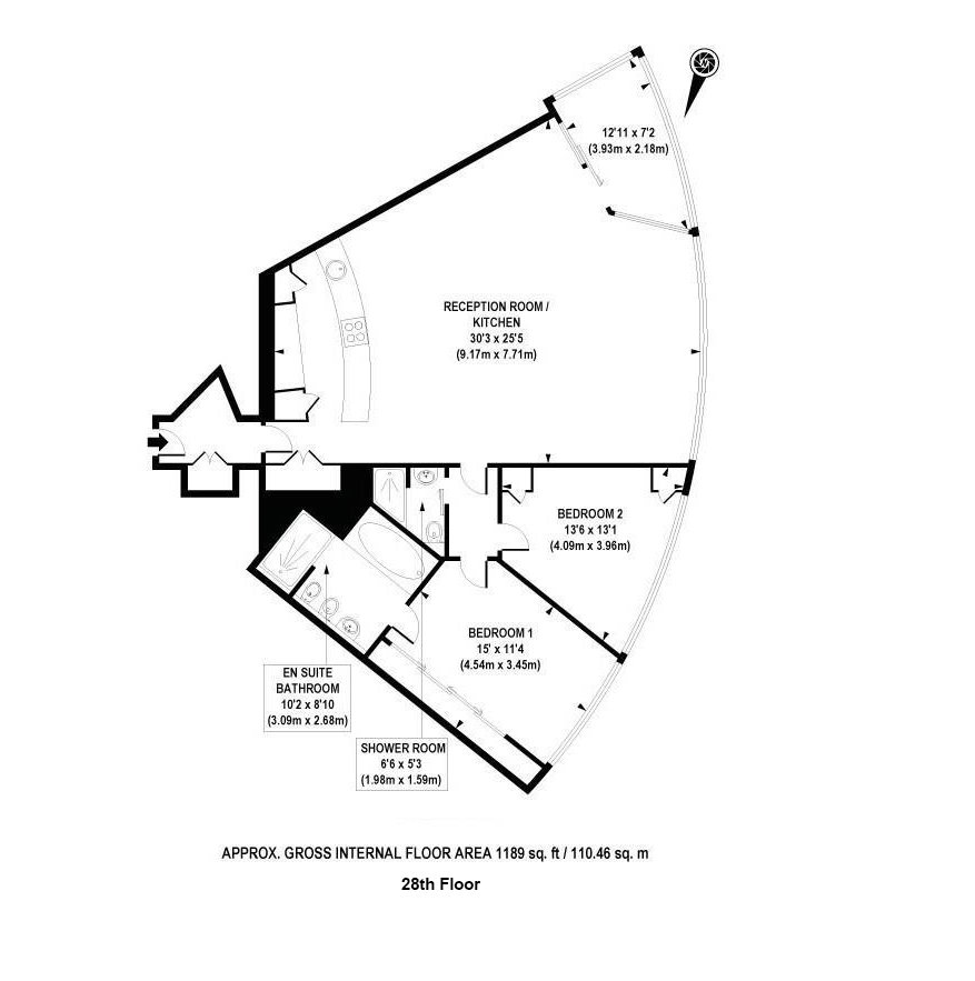 28th floor | 1189 Sq Ft | Two Double Bedrooms | Striking River Views | Immaculate Condition | Superb Amenities | Right To Park | 24 HR Concierge | Gym, Spa and Swimming Pool | Chain Free.