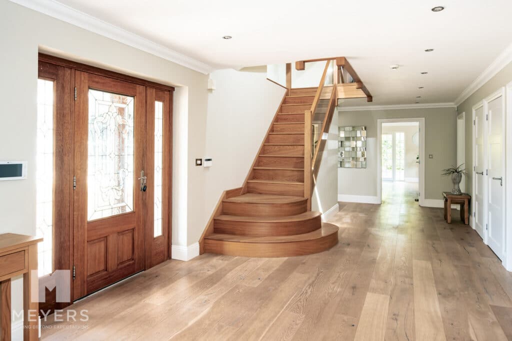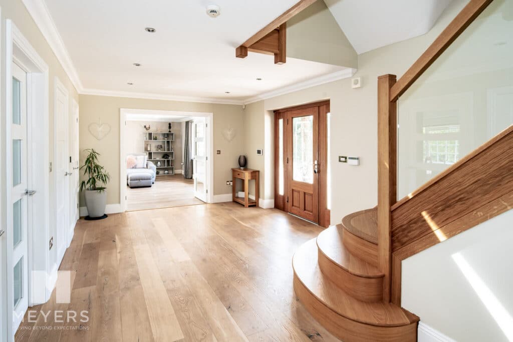 Entering the property via a part glazed hardwood front door with glazed side panel windows, you are immediately greeted with a feeling of space from the generous reception hallway which provides access to all of the ground floor accommodation. The impressive Oak stair case with glass balustrade is a stunning feature to the entrance hallway, together with white hardwood doors and the solid Oak flooring which runs into the kitchen, utility room and ground floor cloakroom. The hallway features two storage cupboards, one housing the pressurised heating system and the other is fitted with shelving for storage and houses one of the underfloor heating manifolds, the other is situated under the stairs where there is additional storage space. An intercom entry system is located by the front door and the property is fitted with an alarm.