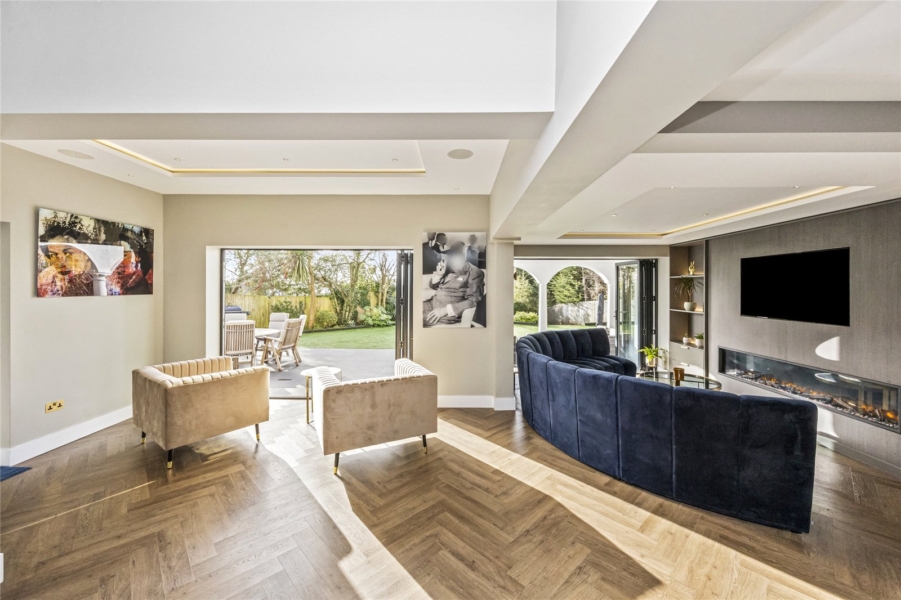 Set discreetly behind electric gates and framed by beautifully landscaped gardens, this exceptional home offers over 5,300 square feet of thoughtfully curated accommodation, arranged across three generous floors.