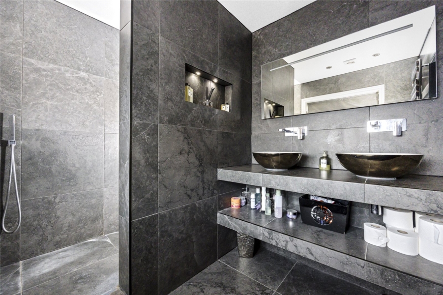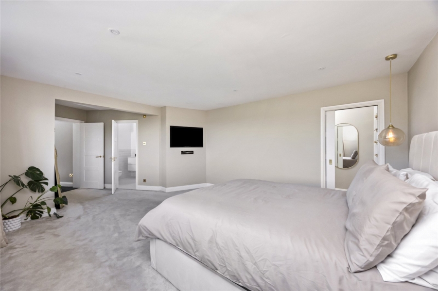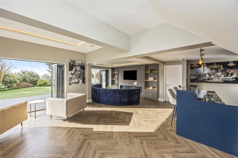 The lower ground floor introduces a superb lifestyle level, centred around a large reception room with bespoke bar area and direct access to the terrace and gardens beyond. Perfect for entertaining, this floor also incorporates a bedroom and bathroom, ideal for guests or extended family. There is also a separate W/C and utility room on this floor.