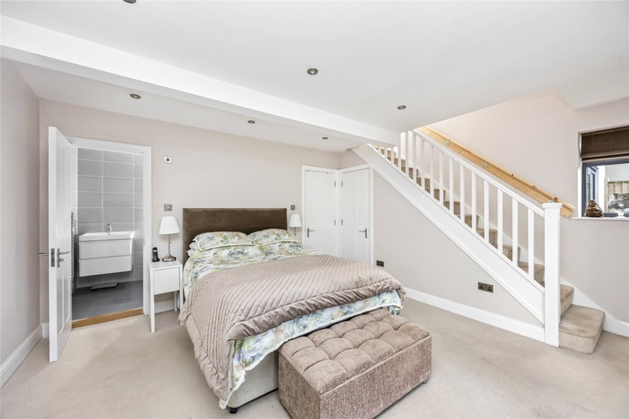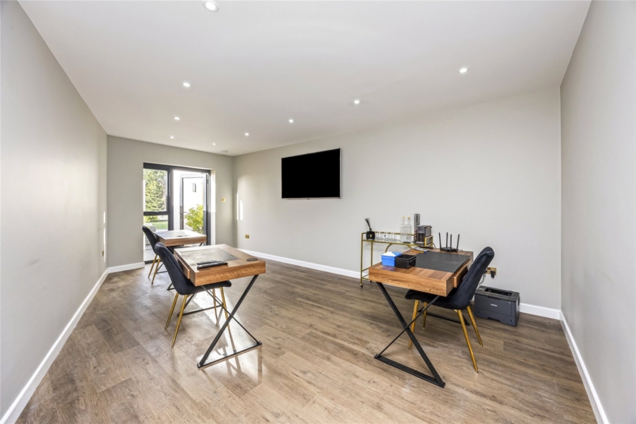 A particularly rare and valuable asset is the self-contained two-storey annex, providing a level of independence and flexibility seldom found in homes of this calibre. The upper level offers a bright open-plan living space, while the lower floor accommodates a bedroom and modern bathroom. Whether for family visiting, older relatives or ancillary use, it is a fantastically integrated, yet entirely private addition. Adjacent to the annex sits an additional reception room, currently used as a home office, but equally suited as a creative studio or teenagers’ hangout space.