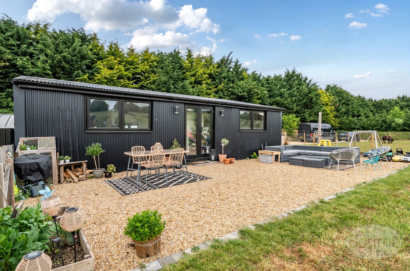 Set within grounds approaching four acres, the main residence offers spacious and thoughtfully designed accommodation, all finished to a high standard. The property features three generously proportioned double bedrooms, each with stylish built-in storage and striking vaulted ceilings that enhance the sense of space and character. The principal bedroom benefits from its own modern en-suite shower room, providing a private sanctuary for relaxation.
