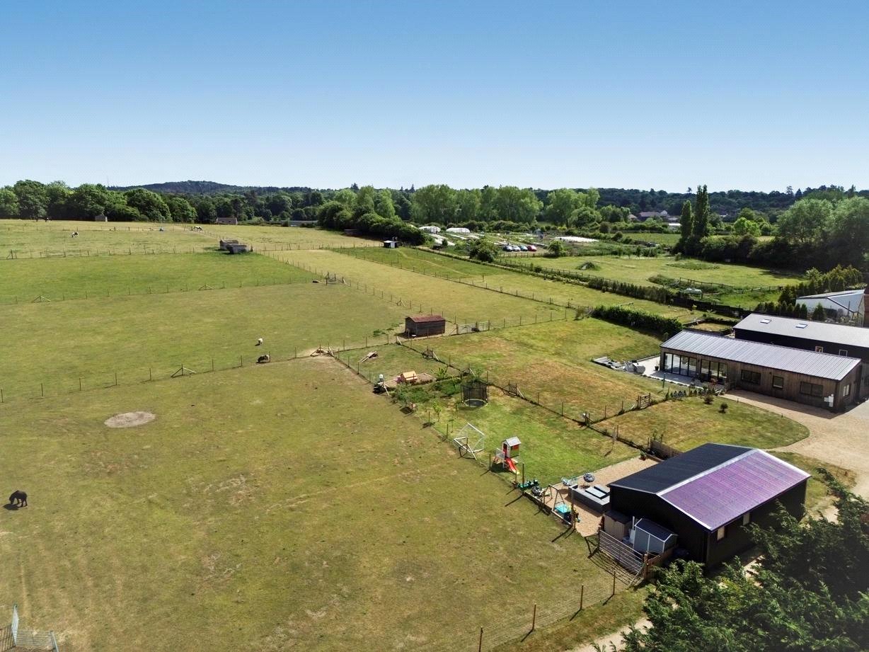 An absolutely stunning, privately gated detached barn conversion with approx. 4 acres, with a detached annexe, situated in the highly sought-after village of Runfold.