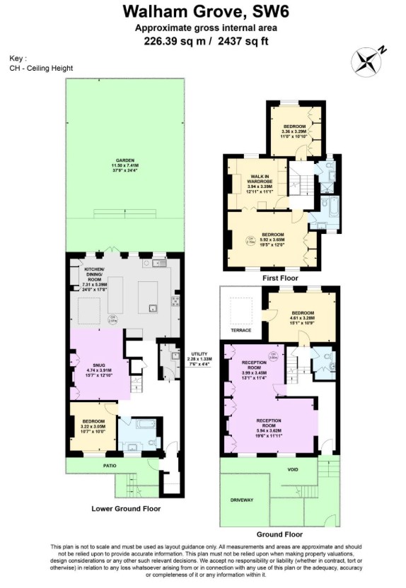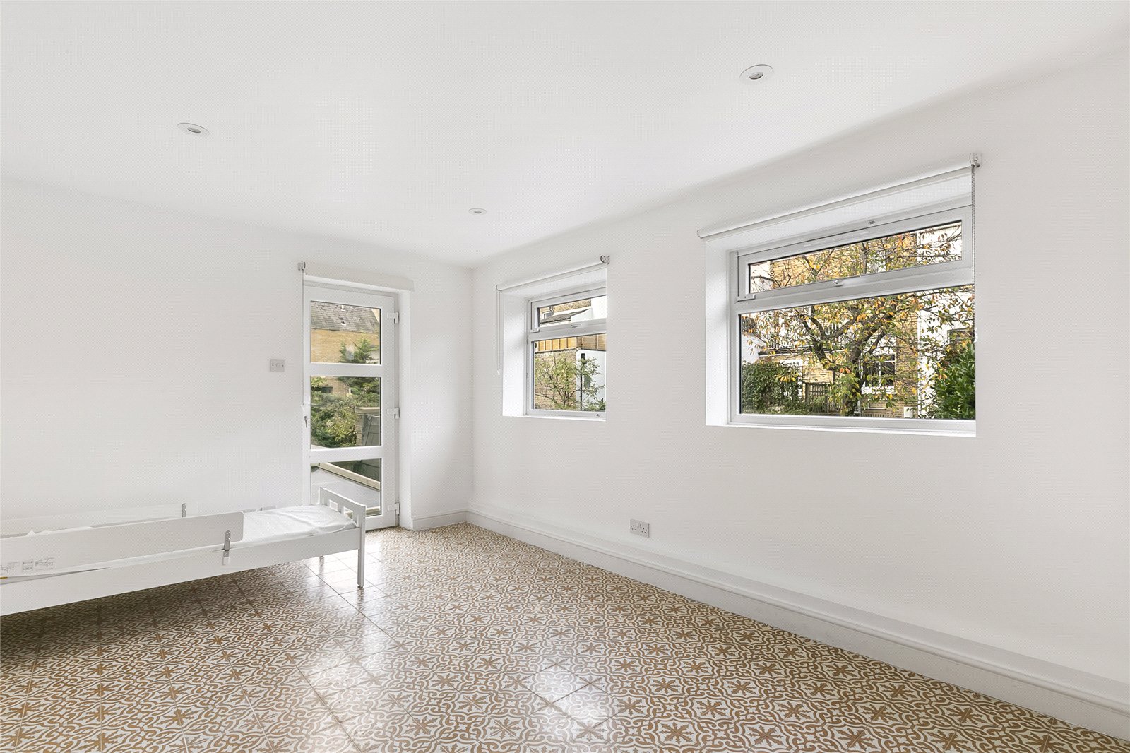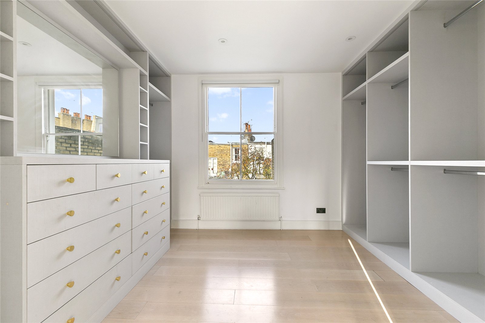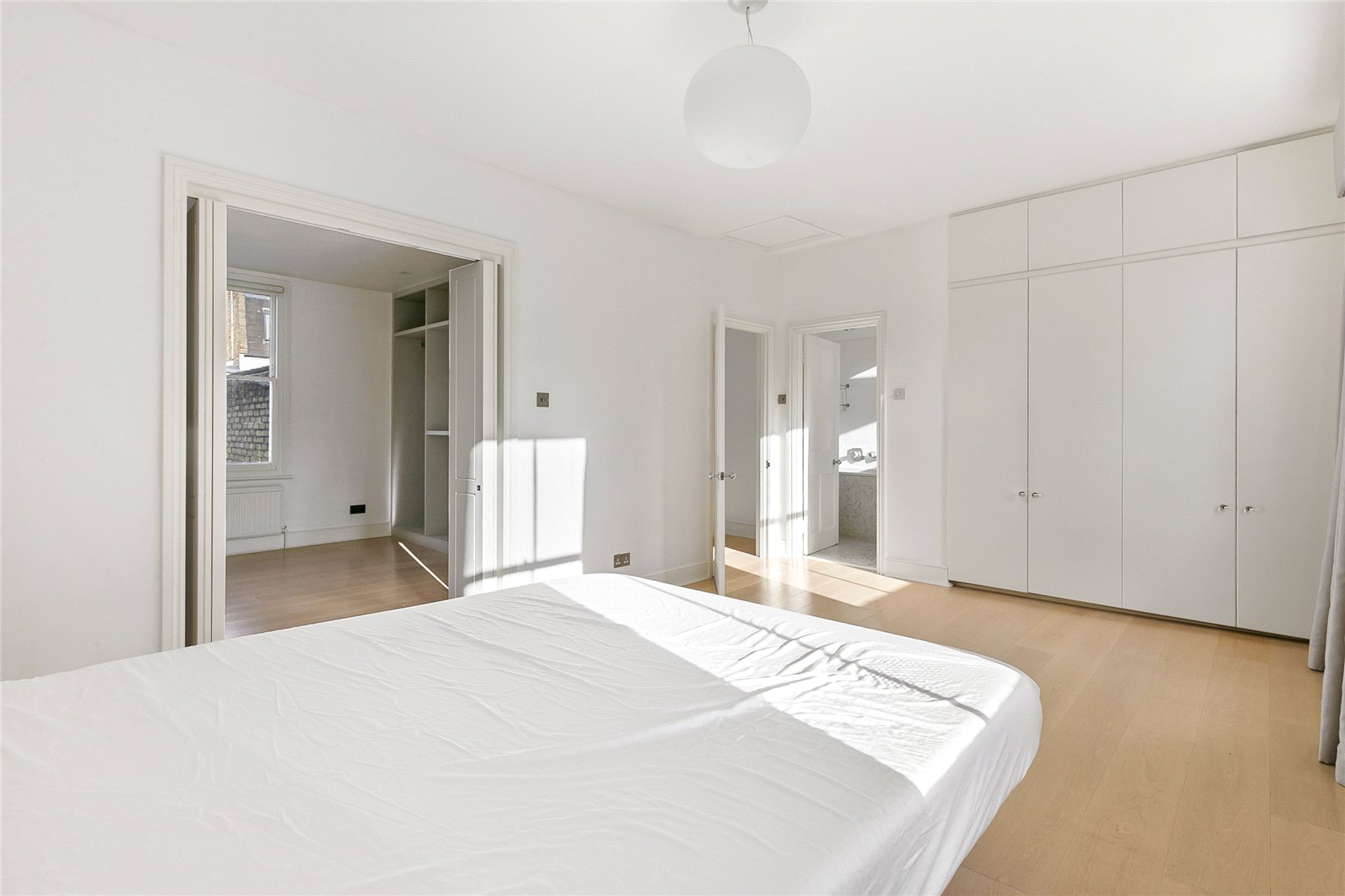 The stairs leading to the lower floor go past a rear-facing double bedroom and guest WC on the half-landing. The lower ground floor has a wonderful, bespoke kitchen which has been designed to professional standards and which overlooks the garden. It is open-plan to a comfortable seating area which makes this whole area the heart of the home. At this level there is also another bedroom and full bathroom as well as a utility room and storage space under the front steps. The master bedroom on the first floor has built-in wardrobes and en suite bathroom. There are two further bedrooms, each with built-in wardrobes, and a separate shower room/WC. The sizeable garden has been sympathetically landscaped and enjoys a generous paved al-fresco dining area as well as mature shrubs and plants.