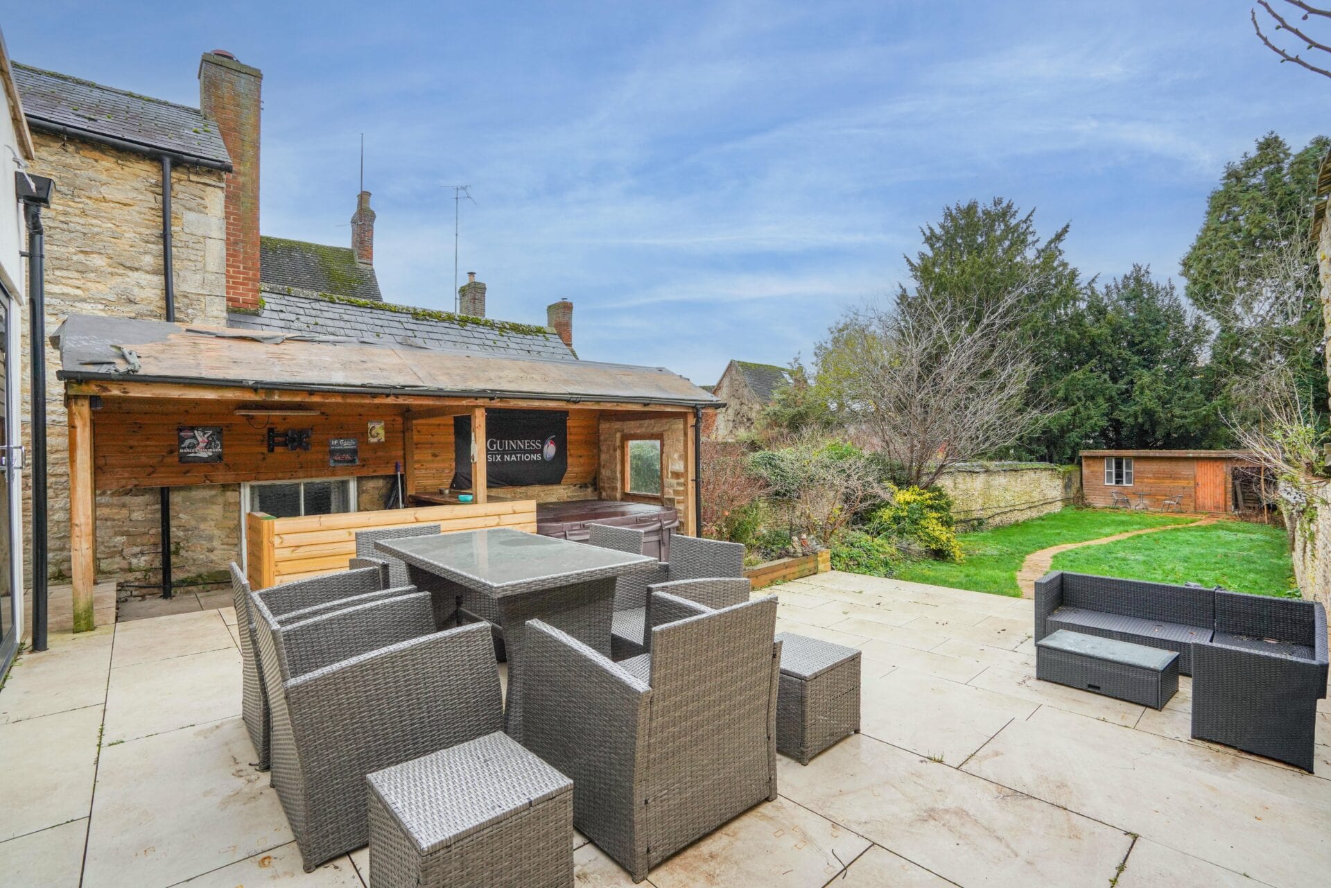 A fabulous opportunity to purchase this exceptional Grade II listed home, offering a purchaser over 3000sqft of beautifully preserved and thoughtfully modernised living space in the heart of the town centre. Period features of this home include exposed beams, feature fireplaces and elegant architectural details throughout perfectly paired with a contemporary twist. The home is accessed from the ground floor with the accommodation comprising a split-level sitting room with two feature fireplaces, open plan kitchen/dining room with additional fireplace, shaker style kitchen cupboards, quartz worktop, integrated appliances and bi-fold doors leading out to the rear garden. There is also a WC, boot room and utility/boiler room. Stairs from the dining room lead down into the expansive cellar/basement which is currently used as a bar/games room. To the first floor are three spacious bedrooms including the master bedroom with modern ensuite and built-in wardrobes plus the contemporary family bathroom with freestanding rolltop bath and separate shower cubicle. To the second floor are three additional bedrooms. Outside is the south-facing rear garden offering a split-level patio, outbuilding with power and light and covered bar/hot tub area. The vendors advise there is permit parking to the front of the property.