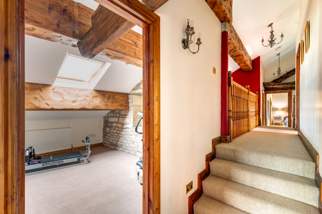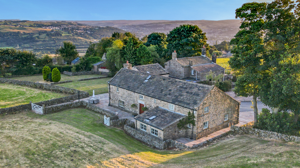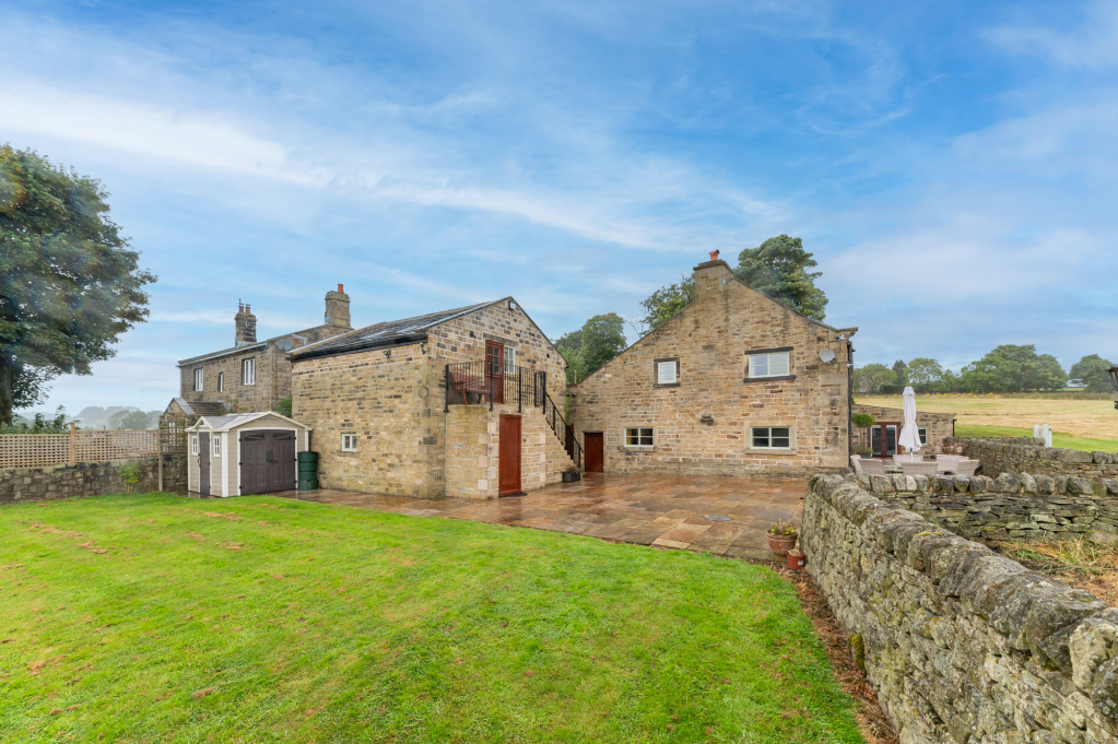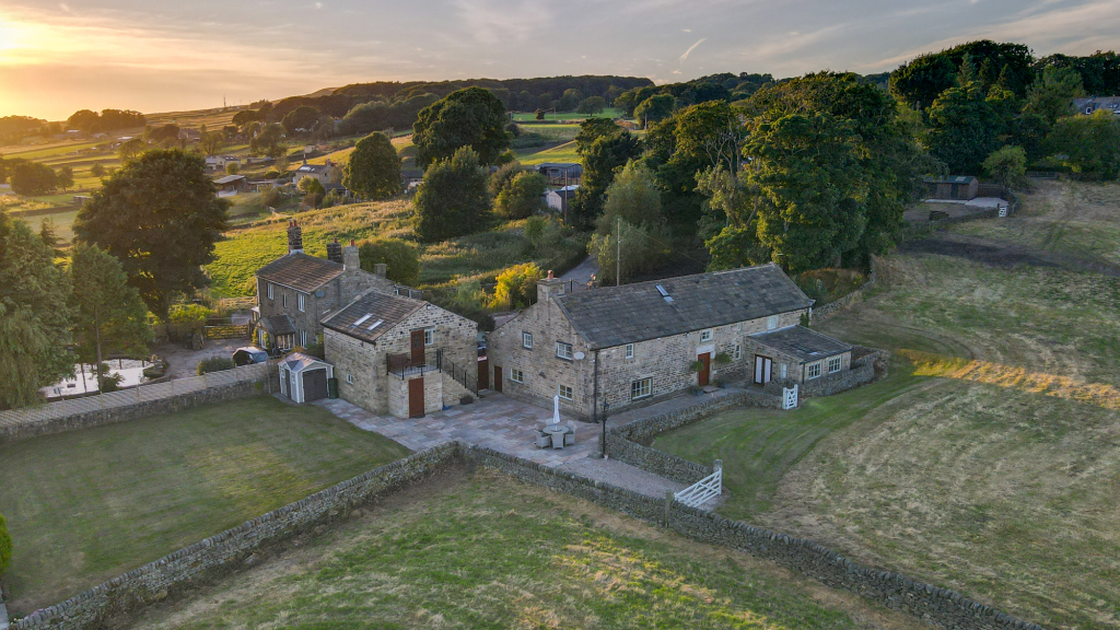 Delightfully situated in an elevated position enjoying fine views towards the countryside and beyond is a beautifully presented five bedroom stone built detached barn conversion offering outstanding living accommodation standing in large landscaped gardens, detached garage block with annexe, large driveway, and adjoining land with stables extending to approximately 3.5 acres.