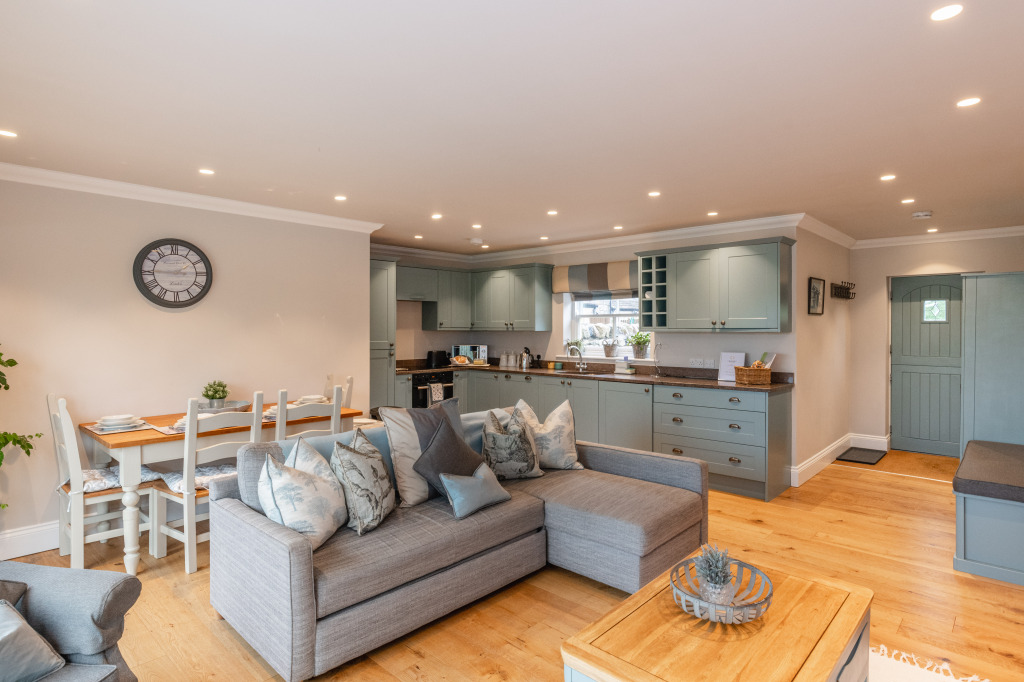 The main residence Mere Syke Farm is a three bedroom property, comprising, utility room, three bedrooms (master en suite ) and wet room to the ground floor. At first floor level is an impressive open plan living area fitted with a bespoke kitchen which includes many integrated appliances.