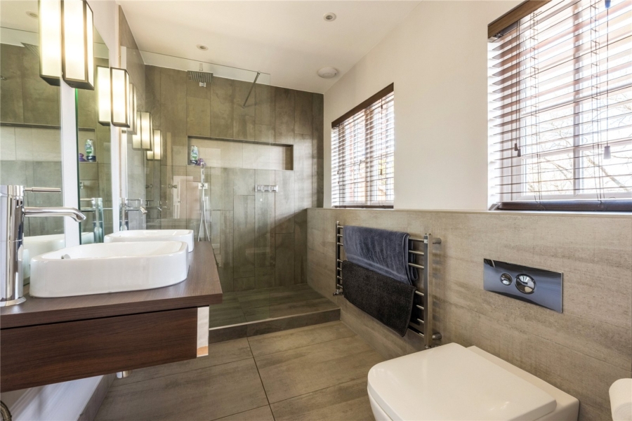 The second bedroom is also a great size and one either older children or guests will love to use. The family bathroom off the landing has a modern finish, double sink, and spacious walk-in shower.