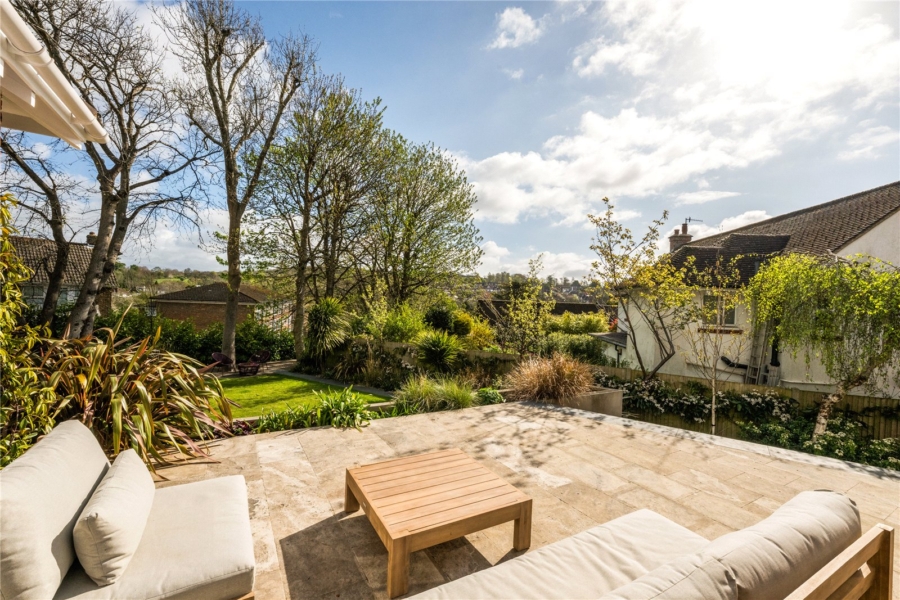 Outside the garden is a well-designed and private space. The large patio area that leads from the house is a great place to entertain in the summer months. Down some steps to the lawned area and again a great space to relax. There is a large shed hidden away right at the back corner of the garden.