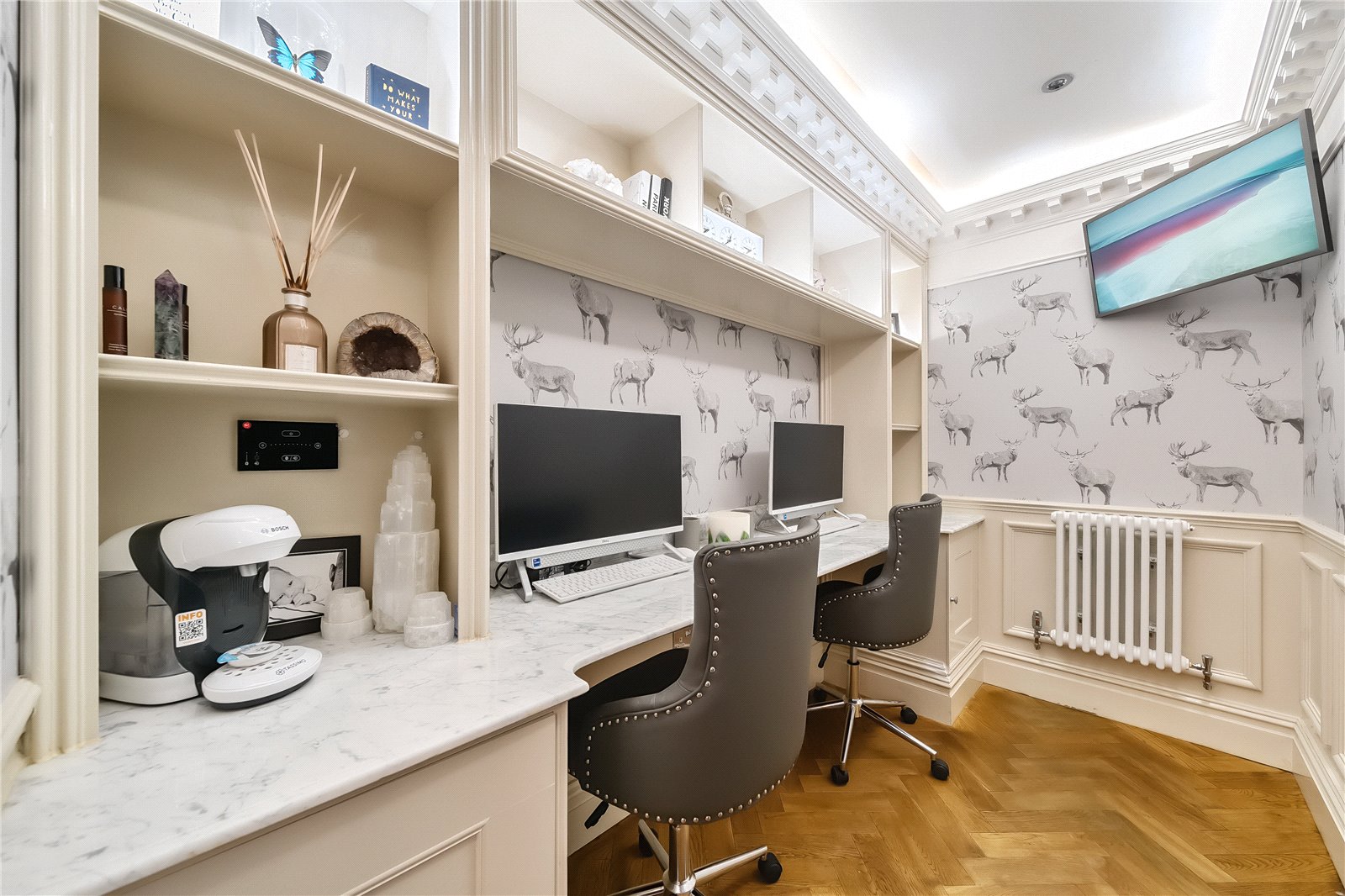 Step inside to discover a haven of luxury and comfort, where spacious rooms flow seamlessly together. Light floods through stunning floor to ceiling sash windows, showcasing beautiful cornicing, panelled rooms and wonderful decorative features, offering an ideal environment for both relaxation and entertainment.