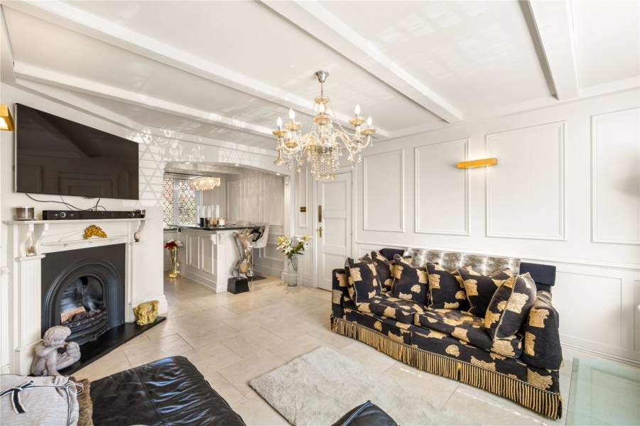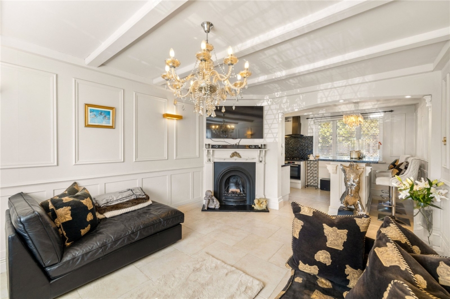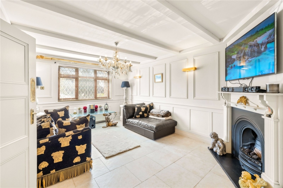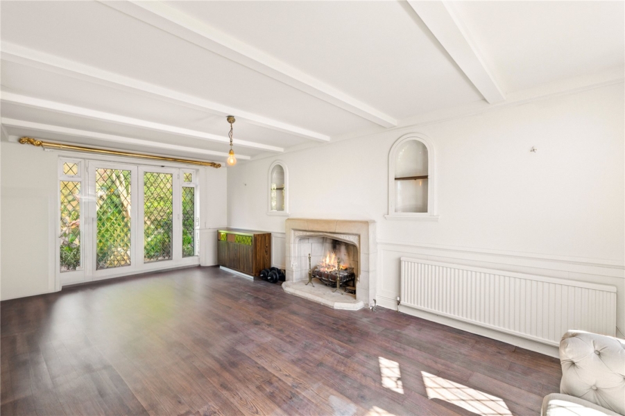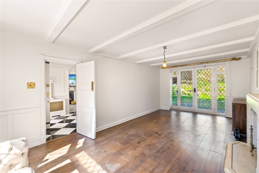 The separate living room is a bright and relaxing space, with windows at both ends flooding the room with natural light and drawing attention to the home’s original features. A convenient ground-floor WC adds to the practicality of everyday living.