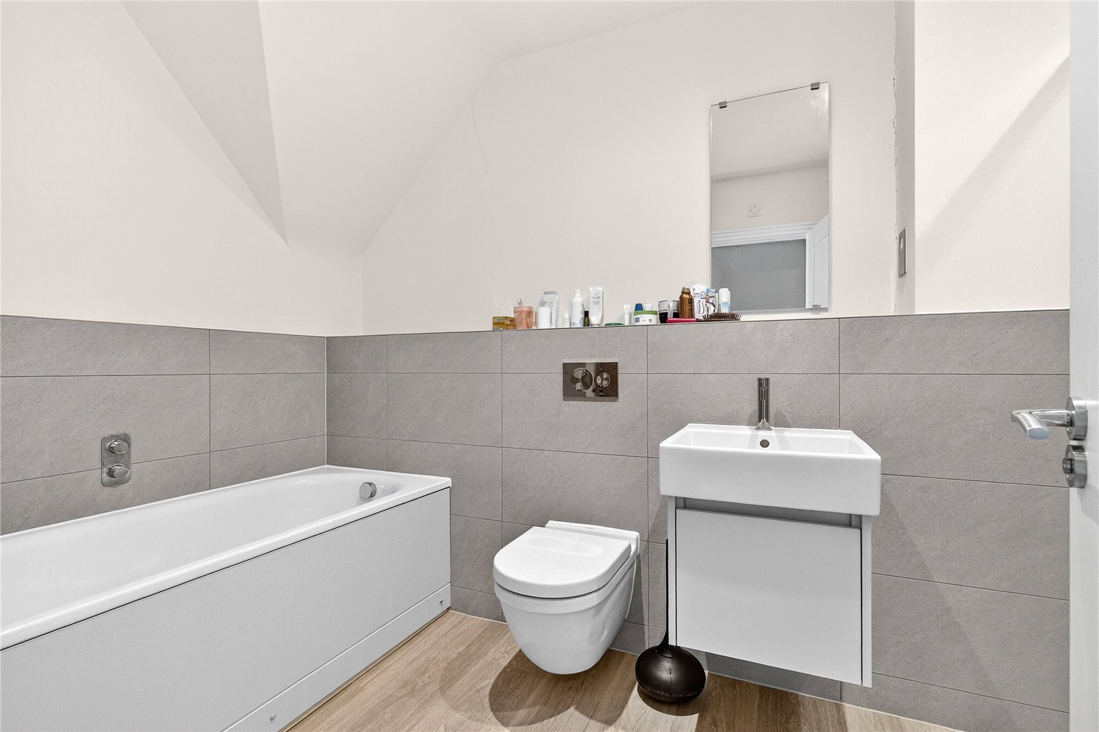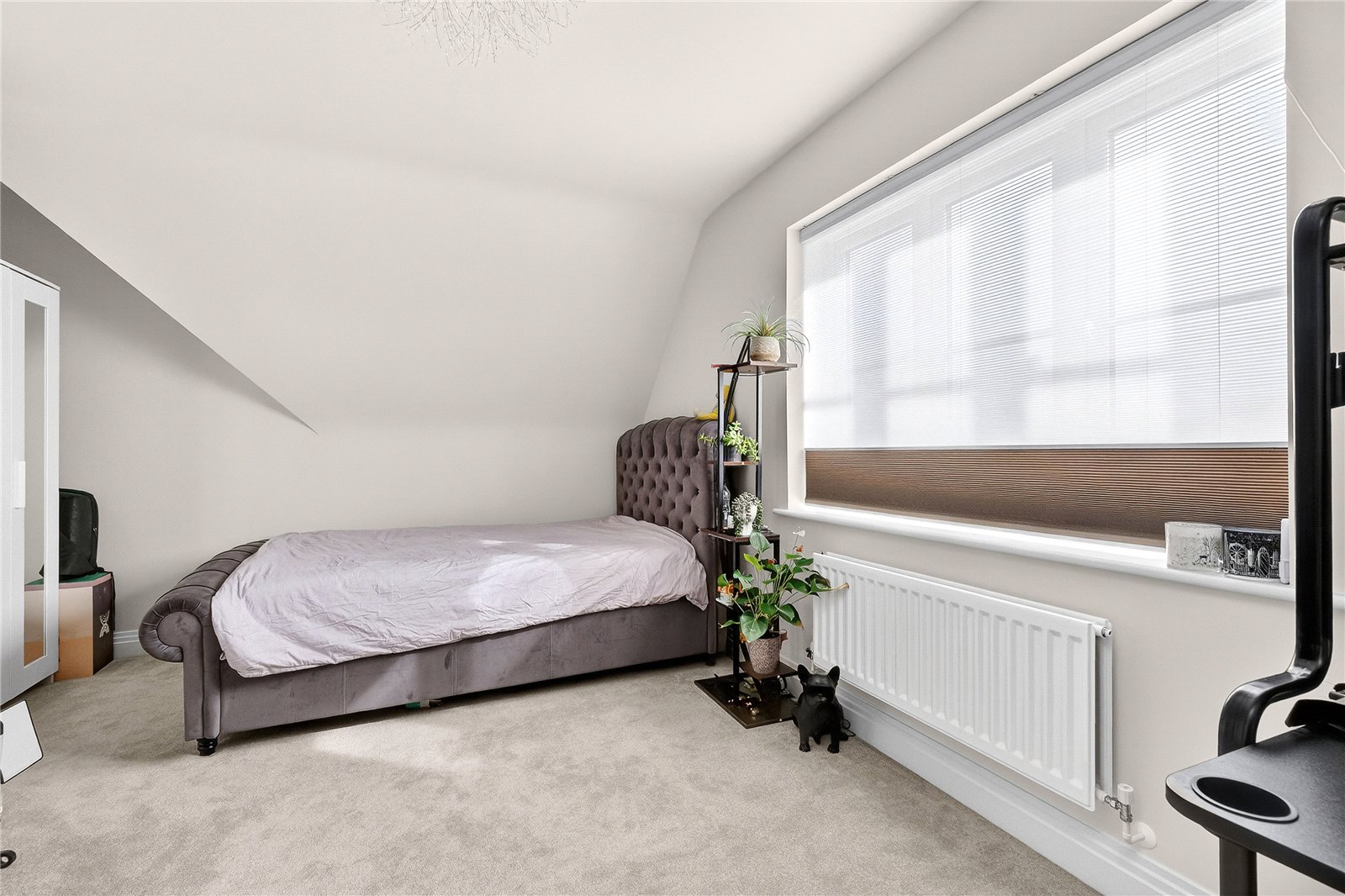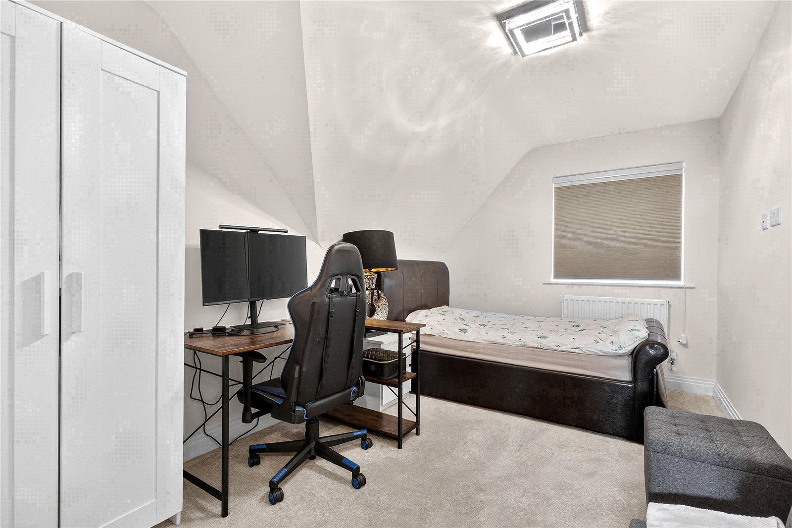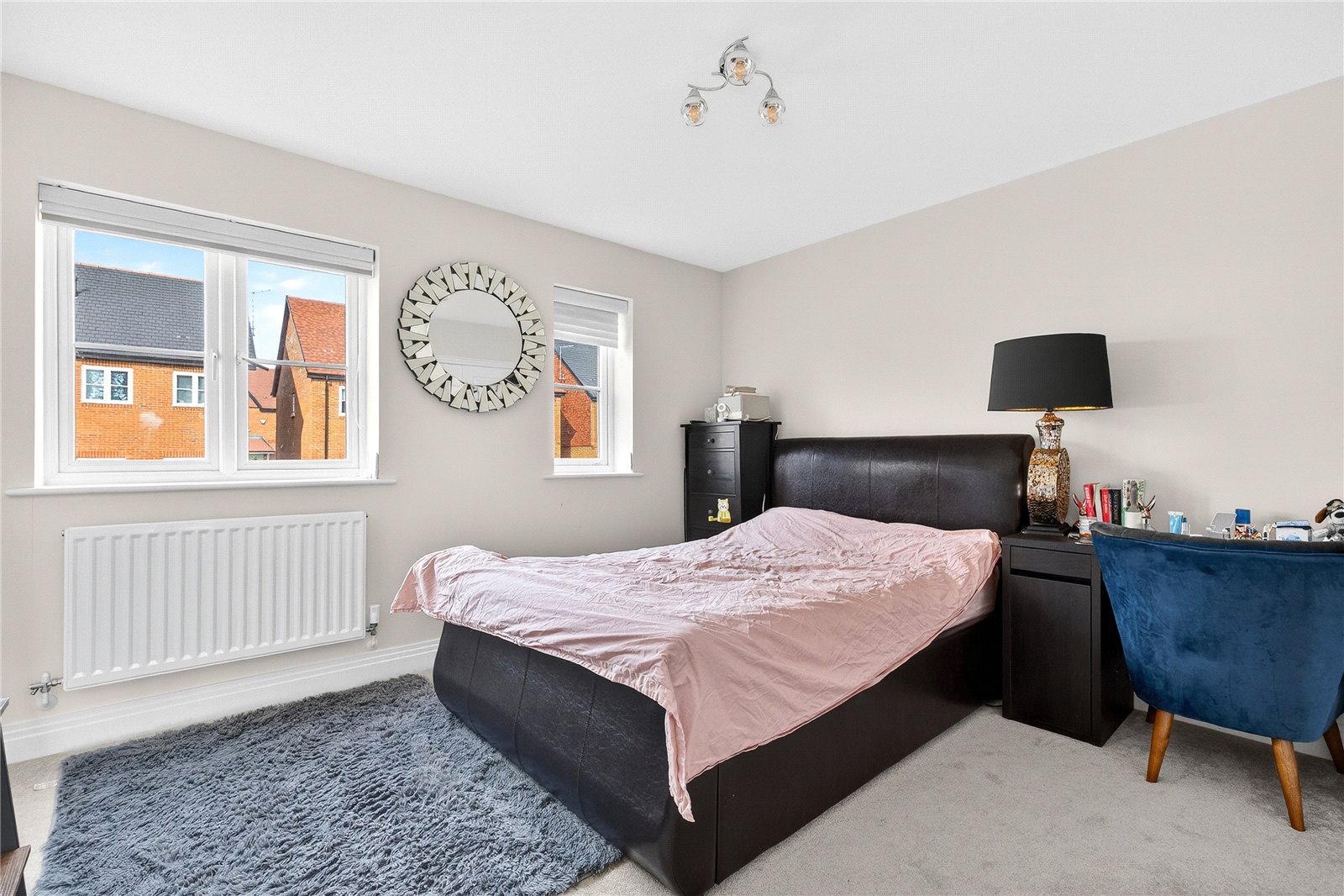 Upstairs, the first floor has two generously proportioned double bedrooms, a dedicated living room, ideal as a teenage retreat, home cinema, or sophisticated sitting room, and a walk-in wardrobe that adds a genuine touch of luxury. The principal bedroom suite comfortably accommodates a king-size bed and substantial furniture, while a private balcony offers a moment of calm above the rooftops.
