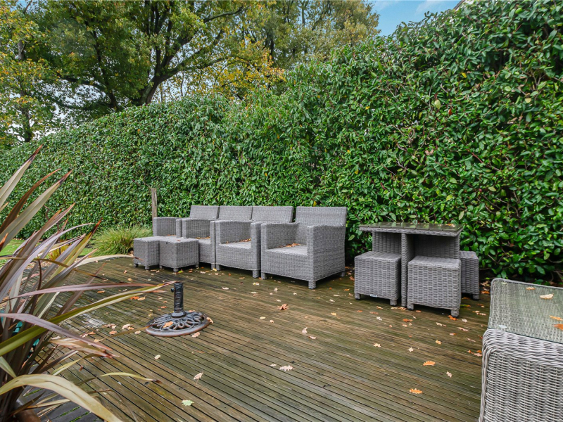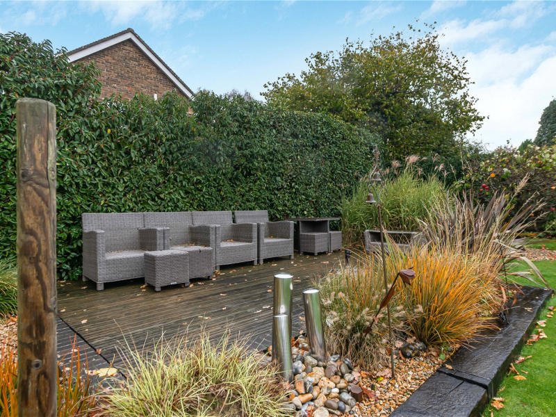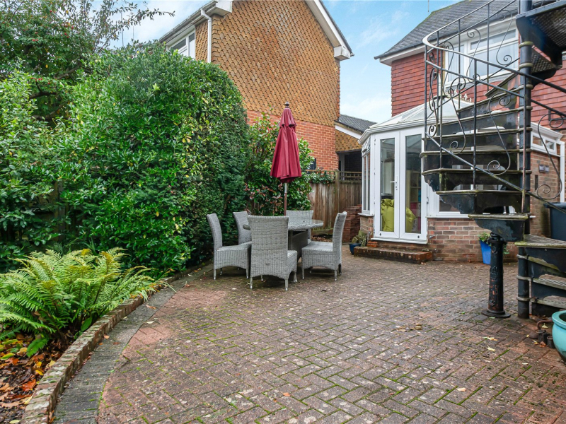 The private rear garden offers a peaceful retreat with mature shrubs and planting throughout, creating a sense of privacy. There is a large patio area perfect for outdoor dining and entertaining, along with a separate seating area positioned to capture the evening sun. Two side access points lead to the garden, one featuring a large gate suitable for bringing in equipment or vehicles. To the rear of the garden there is ample space for a new dwelling or annex S.T.P.P.
