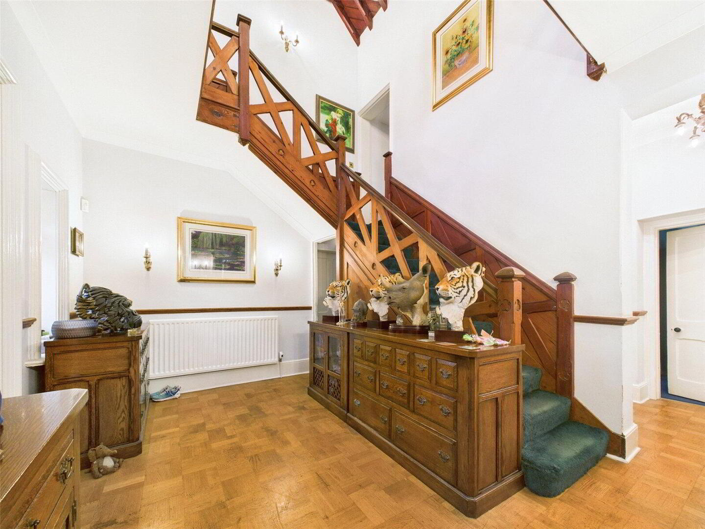 Set in approximately two acres of private, mature grounds, the outside space is every bit as impressive as the home itself. The landscaped formal gardens are beautifully framed by established trees, providing peace and privacy from the outside world. To one side, a double garage and ample parking cater easily for multiple vehicles, while to the other, the property’s private tennis court is sure to delight any Wimbledon enthusiast. Beyond this lies a small orchard and a large garden store — perfect for the ride-on mower and garden essentials.